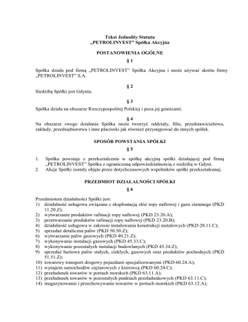 Tekst Jednolity Statutu „PETROLINVEST” Spółka