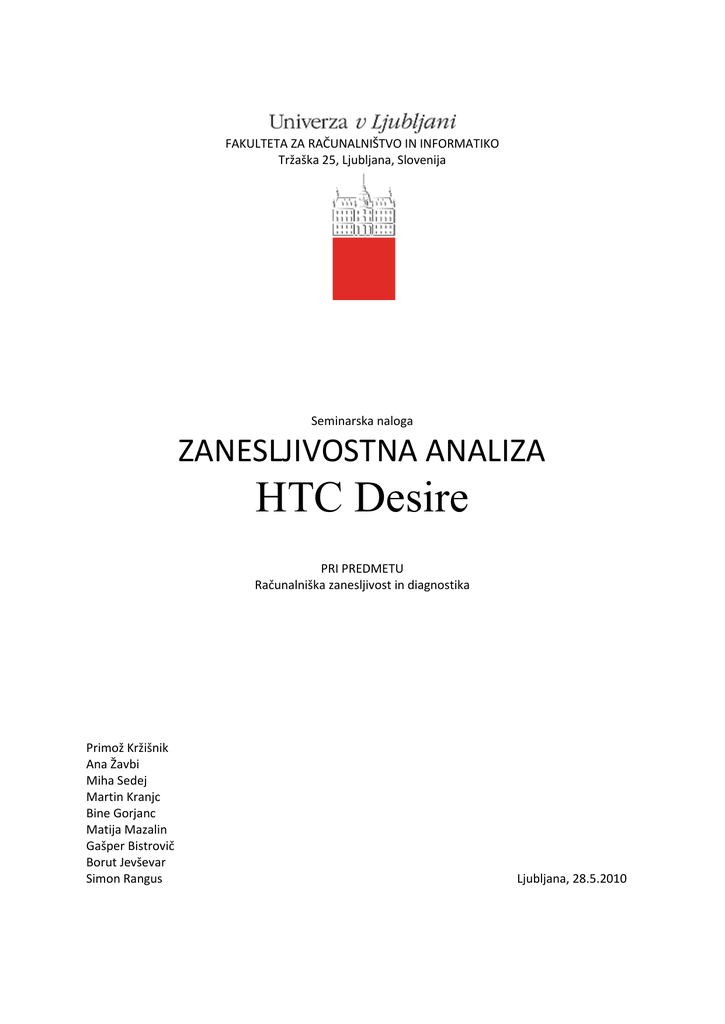 HTC Desire ZANESLJIVOSTNA ANALIZA
