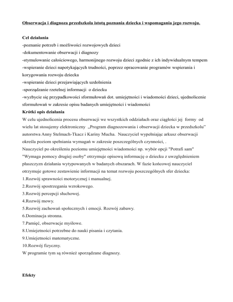 Obserwacja i diagnoza przedszkola istotą poznania dziecka i