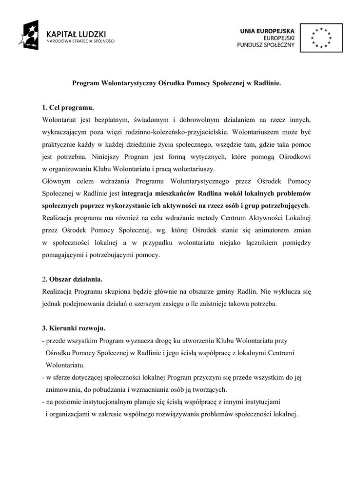 Program Wolontarystyczny Ośrodka Pomocy Społecznej w Radlinie