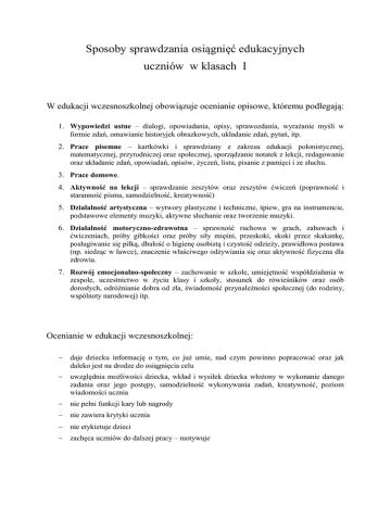Sposoby sprawdzania osiągnięć edukacyjnych uczniów w klasach I