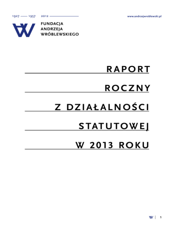 www.andrzejwroblewski.pl R APORT ROCZNY Z DZIAŁ ALNOŚCI S TAT U T O W E J W 2 0 13 R O K U 1 FUNDACJA ANDRZEJA WRÓBLEWSKIEGO Fundacja Andrzeja Wróblewskiego została zarejestrowana 27 lutego 2012 r. pod numerem KRS 0000412488 w Sądzie Rejonowym dla m. st. Warszawy w Warszawie, XII Wydział Gospodarczy Krajowego Rejestru Sądowego. Organ sprawujący nadzór: Minister Kultury i Dziedzictwa Narodowego Fundatorzy: Marta Wróblewska (cóka artysty), Krystyna Łysik (wnuczka artysty), dr Magdalena Ziółkowska i Wojciech Grzybała. Zarząd Fundacji: Wojciech Grzybała (prezes), dr Magdalena Ziółkowska (wiceprezeska) DO GŁÓWNYCH CELÓW STATUTOWYCH FUNDACJI NALEŻĄ: • rozwój, rozpowszechnianie i kontekstualizowanie wiedzy o życiu i twórczości Andrzeja Wróblewskiego (ur. 1927, Wilno – zm. 1957, Tatry), • wsparcie naukowe oraz organizacyjne dla instytucji kultury, naukowców, kuratorów, artystów i wszystkich zainteresowanych w badaniach nad tematyką dotyczącą życia i twórczości Andrzeja Wróblewskiego, • opieka konserwatorska nad dorobkiem artystycznym Andrzeja Wróblewskiego pozostającym w instytucjach publicznych, zbiorach spadkobierców i kolekcjach prywatnych, • popularyzacja i promocja polskiej sztuki współczesnej w kraju i za granicą, w tym twórczości Andrzeja Wróblewskiego. NASZE CELE STATUTOWE REALIZUJEMY POPRZEZ: • inicjowanie i organizowanie wystaw, konferencji naukowych, seminariów, sympozjów, warsztatów i innych wydarzeń artystycznych związanych ze sztuką współczesną, w szczególności z życiem i twórczością Andrzeja Wróblewskiego, • realizację zadań publicznych na zlecenie organów administracji publicznej w zakresie kultury i sztuki, ochronę dóbr kultury i dziedzictwa narodowego związanych ze sztuką współczesną, • inicjowanie i udział w polskich i międzynarodowych projektach badawczych związanych ze sztuką współczesną, w szczególności z życiem i twórczością Andrzeja Wróblewskiego, • prowadzenie działalności wydawniczej, w tym internetowej, promującej oraz popularyzującej życie i twórczość Andrzeja Wróblewskiego, • inspirowanie naukowców, kuratorów, artystów i wszystkich zainteresowanych wokół celów i idei Fundacji oraz współpracę z innymi podmiotami o podobnych celach działania, • gromadzenie, opracowywanie i udostępnianie materiałów archiwalnych, naukowych oraz informacji dotyczących życia i twórczości Andrzeja Wróblewskiego, • opiniowanie w sprawach twórczości artystycznej Andrzeja Wróblewskiego, ze szczególnym uwzględnieniem orzekania o autentyczności prac oraz prowadzenie prac konserwatorskich w zakresie spuścizny artysty, • przetwarzanie i udostępnianie materiału wizualnego, reprodukcji prac Andrzeja Wróblewskiego oraz tekstów jego autorstwa, • przyznawanie nagród oraz stypendiów artystom i naukowcom. 2 Fundacja posiada pełnię majątkowych praw autorskich do niemal wszystkich utworów stworzonych przez Andrzeja Wróblewskiego. Na podstawie darowizny Spadkobierców Artysty, Fundacja uzyskała prawa do utworów Andrzeja Wróblewskiego, które są zastrzeżone wyłącznie dla niej i chronione na podstawie przepisów prawa polskiego i międzynarodowego. W 2012 r. Fundacja wprowadziła określone zasady udostępniania reprodukcji i udzielania licencji osobom prywatnym oraz instytucjom rozróżniając „naukowe i edukacyjne korzystanie z utworów” oraz „komercyjne korzystanie z utworów”. W myśl uchwały Zarządu Fundacja udziela bezpłatną licencję na korzystanie z utworu lub udostępnienie jego reprodukcji uczelniom wyższym i jednostkom badawczych. Jednym z istotniejszych celów Fundacji jest uregulowanie na drodze licencji sposobu korzystania z dzieł Andrzeja Wróblewskiego, znajdujących się w publicznych kolekcjach muzealnych. W 2013 r. Fundacja kontynuowała zawieranie umów licencyjnych z instytucjami publicznymi, które posiadają w swoich kolekcjach dzieła Andrzeja Wróblewskiego bez autorskich praw majątkowych. W 2013 r. zostały podpisane licencje z Muzeum Sztuki w Łodzi i Muzeum Narodowym w Warszawie. 3 UNIKANIE STANÓW POŚREDNICH. ANDRZEJ WRÓBLEWSKI (1927–1957) 2012–2014 W 2013 r. kontynuowaliśmy prace w ramach trzyletniego projektu badawczego realizowanego przez Fundację Andrzeja Wróblewskiego we współpracy z Instytutem Adama Mickiewicza oraz Hatje Cantz Verlag. Projekt Unikanie stanów pośrednich to krytyczna refleksja nad twórczością Wróblewskiego w perspektywie prób ustanawiania nowych porządków obrazowania jakie podejmował artysta w niespełna dziesięcioletniej aktywności. Począwszy od eksperymentów z przełomu lat 40. i 50. dokonywanych w języku abstrakcji geometrycznej, poprzez przenikliwe i bezpośrednie ukazanie degradacji człowieka w pracach z 1949 r., do sztuki czytelnej, tematowej, „obliczonej na szeroki zasięg społeczny“, pozbawionej przekształceń, fotograficznej i „zgodnej z wyobraźnią masowego widza”. Dwujęzyczna obszerna monografia artysty, podsumowująca nasze badania, która ukaże się w połowie 2014 r., będzie propozycją nowego odczytania twórczości artysty – z uwzględnieniem wielu aspektów jego działalności, także jako historyka sztuki, krytyka i recenzenta wystaw krakowskich, komentatora ówczesnego życia artystycznego. Przede wszystkim Unikanie stanów pośrednich... to publikacja źródłowa zwracająca się do rudymentów warsztatu historyka sztuki. Pierwszoplanową rolę odgrywają w niej fakty, odnalezione archiwalia, fotografie i dokumenty, opracowane notatki i niepublikowane dotąd rękopisy, a także rekonstrukcje wybranych wystaw artysty. W toku badań natrafiliśmy bowiem na prace nigdy niereprodukowane, te znane dotąd z czarno-białych fotografii, czy inne uznane z kolei za zaginione lub zniszczone. Naszym głównym celem była próba uporządkowania oeuvre artysty poprzez weryfikację datowań dzieł oraz wskazanie tytułów nadawanyc