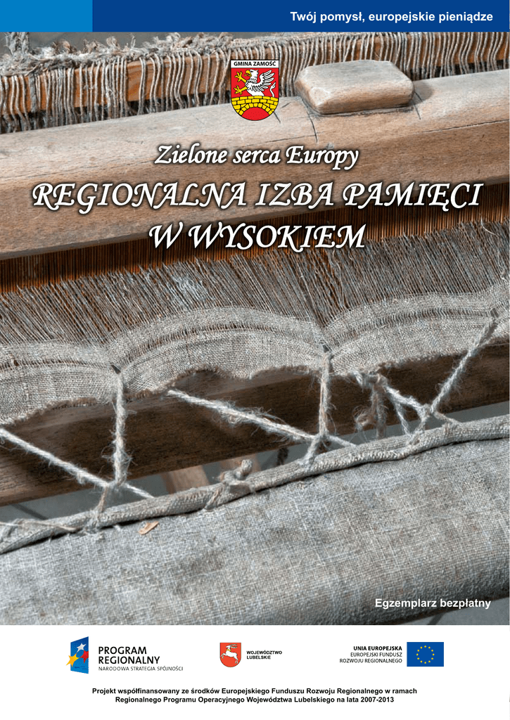 Twój pomysł, europejskie pieniądze PAGINA GMINA ZAMOŚĆ Zielone serca Europy Regionalna Izba Pamięci w Wysokiem Egzemplarz bezpłatny Projekt współfinansowany ze środków Europejskiego Funduszu Rozwoju Regionalnego w ramach Regionalnego Programu Operacyjnego Województwa Lubelskiego na lata 2007-2013 1 gmina zamość Wędrówka po Roztoczu GMINA ZAMOść G mina Zamość jest położona w bezpośrednim sąsiedztwie miasta Zamość – perły renesansu. Jest jedną z największych gmin wiejskich w województwie lubelskim zarówno pod względem obszaru (197 km kw) jak i liczby ludności. Tworzy ją 35 miejscowości zamieszkiwanych przez ponad 21 tysięcy mieszkańców. Południowe tereny Gminy Zamość sięgają Roztocza i Roztoczańskiego Parku Narodowego. Znajdują się tutaj rezerwaty: „Wieprzec” położony wśród łąk wsi o tej sa- Na Ułańskim Szlaku Konnym 2 mej nazwie, chroniący roślinność torfowiskową oraz „Hubale” leżący pomiędzy miejscowościami Mokre i Hubale. Tu na stepowych łąkach żyje w koloniach suseł perełkowany, gatunek gryzonia zagrożonego wyginięciem i wpisanego do Polskiej Czerwonej Księgi Zwierząt. Pomniki przyrody, rozległe krajobrazy dają mieszkańcom i odwiedzającym te tereny poczucie wolności i symbiozy z naturą. Uroki gminy można podziwiać jadąc Ścieżką Rowerową Gminy Zamość lub wędrując pieszymi szlakami. Miłośnicy turystyki konnej mogą mile spędzić czas podczas jazdy na Ułańskim Szlaku Konnym. Urzekają tu urodą wiekowe przydrożne kapliczki, dawne dwory i drewniane, wiejskie zagrody. Tradycja jest tu ciągle żywa. Każdego dnia pielęgnują ją mieszkańcy, twórcy ludowi, 27 Kół Gospodyń Wiejskich, 12 jednostek Ochotniczych Straży Pożarnych, zespoły wokalne, Młodzieżowa Orkiestra Dęta. Ukazują ją podczas dorocznych uroczystości i imprez: „Dni z Tradycją” w Wysokiem, „Dni Samorządowca” w Żdanowie, „Dnia Susła” w Mokrem, „Kresowych Spotkań Miłośników Konia Orientalnego” w Wólce Wieprzeckiej i barwnych Dożynek Gminnych, przyciągających tysiące gości. Na turystów, którzy zechcą odpocząć po krajoznawczych wędrówkach lub pozostać tu dłużej, czekają motele, gościńce a także gospodarstwa agroturystyczne oferujące noclegi i smaczne regionalne dania. To bogactwo Gminy Zamość zachęca do odwiedzania jej, a nawet zamieszkania tu. Gościnność i otwartość mieszkańców zjednuje sympatię turystów i zagranicznych partnerów. gmina zamość Dożynki Gminy Zamość Od początku 2010 roku Gmina Zamość realizuje międzynarodowy projekt pn. „Zielone serca Europy – promocja walorów kulturowych i turystycznych terenów Gminy Zamość”. Całość projektu realizowanego przez Gminę Zamość jest współfinansowana ze środków Europejskiego Funduszu Rozwoju Regionalnego w ramach Regionalnego Programu Operacyjnego Województwa Lubelskiego na lata 2007 – 2013, a partnerami Gminy są: Gmina Sárospatak (Węgry), Agentúra regionálneho rozvoja Poloniny (Słowacja), Gmina Staffolo (Włochy), Polskie Towarzystwo Turystyczno – Krajoznawcze Oddział w Rzeszowie (Polska). Wśród wielu zadań i pomysłów jakie, znalazły miejsce w jego szerokich ramach, znajduje się inicjatywa podjęta przez mieszkanki Wysokiego – panie z Koła Gospodyń Wiejskich, którą jest ocalenie od zapomnienia pamiątek życia w dawnej wsi. Przy kapliczce św. Romana w Lipsku Polesiu Europejskie Dni z Tradycją w Wysokiem 3 regionalna izba pamięci w wysokiem WYSOKIE W ieś położona jest w północno – zachodniej części Gminy Zamość. Nazwa jej swój początek bierze od charakterystycznego położenia na wysokim brzegu rzeki Kalinowicy, dzisiaj nazywanej Łabuńką. Założona została około połowy XVI wieku. Pierwsza wzmianka o niej pochodzi z rejestru poborowego z 1564 roku, który wymienił Wysokie w parafii szczebrzeskiej. W ciągu wieków Wysokie należało do wielkiej włości szczebrzeskiej, Ordynacji Zamojskiej, a obecnie jest częścią Gminy Zamość. Dziś wieś liczy ponad 700 mieszkańców i dzieli się na dwie części: Stare Wysokie położone przy trakcie z Chyżej i nowe Wysokie, które powstało po połowie XIX w. Dawne dzieje miejscowości przypominają przydrożne kapliczki i krzyże, otulone lipami. W 1908 r. Jakub i Julina Łój ufundowali tu kapliczkę umiejscowioną na słupie. Dziś otaczają ją 4 zrośnięte lipy. Według tradycji ludowej lipa ma mieć szczególną moc. Wierzono, że nie uderza w nią piorun, a żadna nieczysta moc nie potrafi rozerwać lipowego łyka. Pod lipami odbywano sądy, a kwiaty i gałązki z tegoż drzewa miały pomagać w chorobach. Wiara ta wypływała z legendy, według której Matka Boska znalazła schronienie w cieniu tego drzewa podczas swej ucieczki do Egiptu. Ustawiona na skarpie figura zwieńczona kutym w żelazie krucyfiksem z 1899 roku przez lata przypominała o położeniu nieistniejącego już dziś folwarku, obok figury wiodła bowiem prowadząca do niego droga. Szczególnym miejscem w Starym Wysokiem jest budynek starej remizy strażackiej. Jest to miejsce, gdzie pierwotnie była zlokalizowana od 2005 roku Regionalna Izba Pamięci. Budynek pełni także funkcję świetlicy wiejskiej, jest miejscem spotkań mieszkańców, a nawet poświęcenia wielkanocnych koszyczków w Wielką Sobotę. W historię Wysokiego na zawsze wpisana została osoba Kapliczka z 1899 r. w Wysokiem pierwszego dyrektora tutejszej szkoły, Edwarda Kasprzysiaka. Urodził się on w Samborze. Jako młody człowiek walczył na froncie przeciw bolszewikom. W 1921 roku otrzymał medal „Polska – swemu obrońcy 1918-1921”. Jeszcze w tym samym roku świeżo upieczony maturzysta został skierowany na posadę nauczyciela w Wysokiem. Miał tylko 20 lat, a zjednał wszystkich przy budowie nowego piętrowego budynku szkoły. Prace budowlane prowadzono od 1923 do 1926 roku. Szkoła stała się centrum intelektualnym wsi. Podczas II wojny 