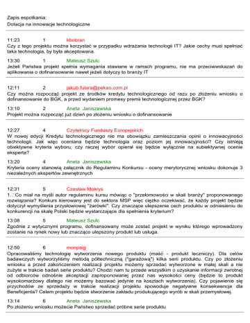 Zapis espotkania: Dotacja na innowacje technologiczne 11:23 1