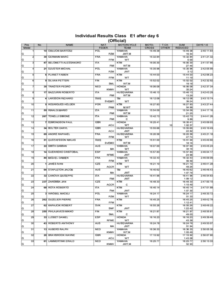 ,QGLYLGXDO5HVXOWV&ODVV(DIWHUGD\
