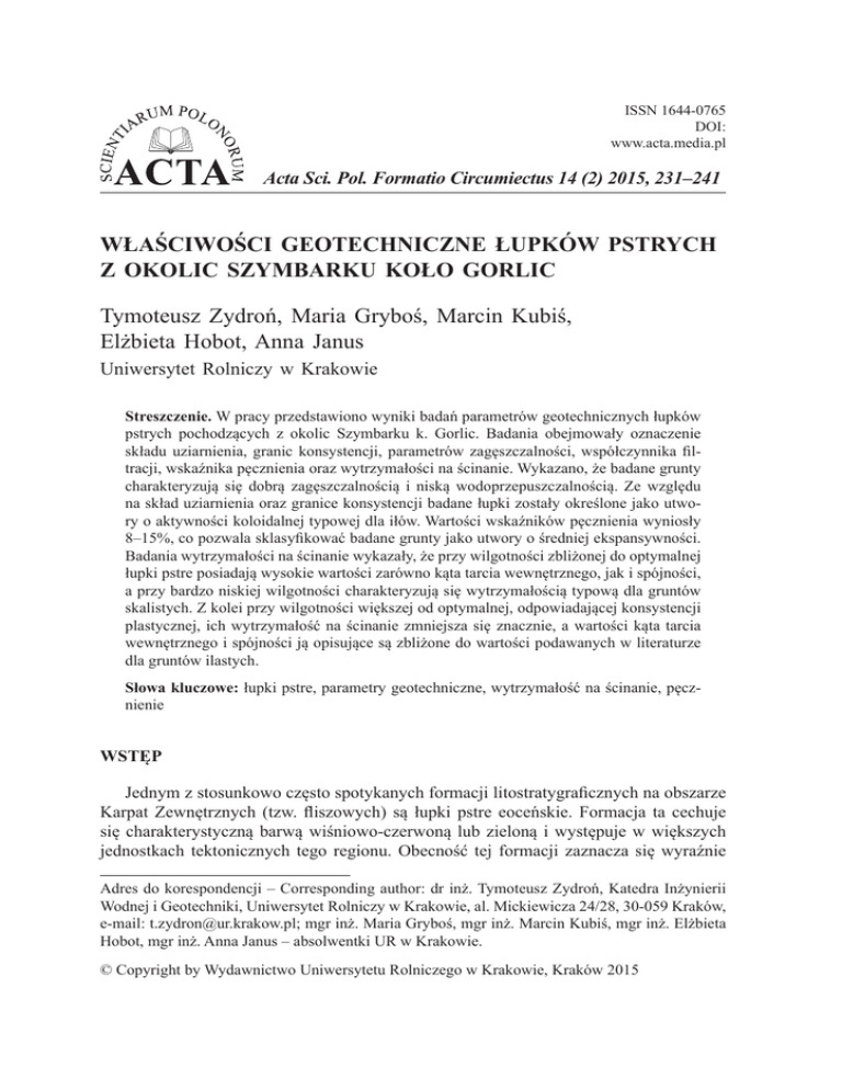 WŁAŚCIWOŚCI GEOTECHNICZNE ŁUPKÓW PSTRYCH Z OKOLIC