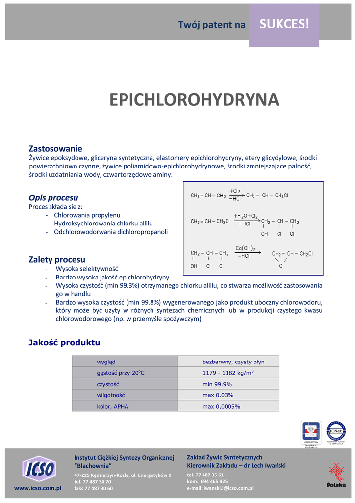 epichlorohydryna - Instytut Ciężkiej Syntezy Organicznej "Blachownia"