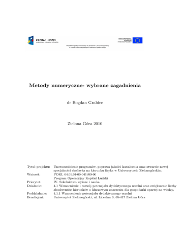 [2] Z.Fortuna, B.Macukow, J.Wąsowski, Metody Numeryczne, WNT 1998