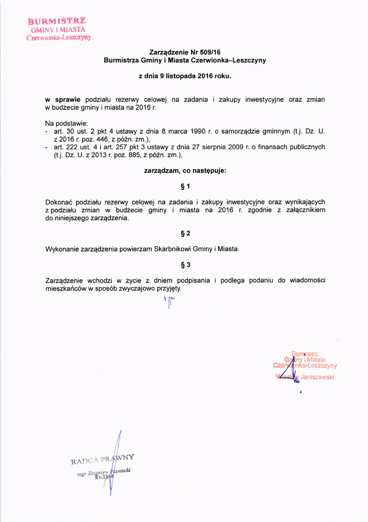 Burmistrza Gminy i Miasta Czenrionka-Leszczyny