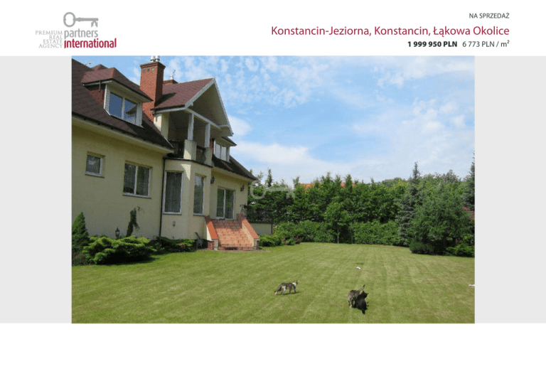 NA SPRZEDAŻ Konstancin-Jeziorna, Konstancin, Łąkowa Okolice 1 999 950 PLN 6 773 PLN / m² POWIERZCHNIA: 295 M² POWIERZCHNIA UŻYTKOWA: 1 457 M² POWIERZCHNIA DZIAŁKI: 246 M² LICZBA POKOI: 5 LICZBA SYPIALNI: 3 ROK BUDOWY: 1996 NUMER OFERTY: 20427 Opis Jasny, przestronny dom wolnostojący w Konstancinie-Jeziorna ! Okazyjna cena ! ROZKŁAD POMIESZCZEŃ: Parter: Przestronny salon (40,2 m2) z wyjściem na słoneczny taras, jadalnia z wykuszem (10 m2), kuchnia wraz ze spiżarnią (całość 16 m2), ustawny gabinet (11 m2), hall (16 m2), toaleta oraz garderoba. Poddasz użytkowe: Trzy ustawne, dobrze doświetlone sypialnie 15,5 m2 i 12,5 m2 w tym master-bedroom o powierzchni 31 m2. Każda z sypialni posiada własną praktycznie zaaranżowaną garderobę a dodatkowo dwa pokoje mają wyjście na wspólny taras. Na poddaszu znajduje się także przestronna łazienka połączona z pomieszczeniem gospodarczym. Piwnica: kotłownia 4,14 m2, schowek 1,13 m2, garaż na 2 samochody (32 m2). DODATKOWE INFORMACJE: Dom po generalnym remoncie w 2005 roku z pięknym, zadbanym ogrodem w kształcie kwadratu. Urocza okolica sprzyja relaksowi a także aktywnemu wypoczynkowi w pełnym kontakcie z naturą. KONTAKT: Marta 502 157 999 POŚREDNIK ODPOWIEDZIALNY: Joanna Czapska (licencja zawodowa nr 4585), Przedstawiona wyżej propozycja nie jest ofertą handlową w rozumieniu przepisów prawa lecz ma charakter informacyjny. Wszelkie dane dotyczące nieruchomości uzyskano na podstawie oświadczeń Sprzedających ______________________________________________________________________________________________________________________________________________________ Bright, spacious detached house in Konstancin Jeziorna ! DISTRIBUTION OF PREMISES On the ground floor there is a spacious living room with a doors to the sunny terrace and garden, also a large kitchen with pantry and dining room with oriel, study room, bathroom with shower, dressing room On the attic there are three bedrooms, each with a dressing room and two bathrooms have an entrance to the terrace, one big bathroom with tub, secon one with shower. Basement consists of bathroom with a shower, boiler, storage room, parking space for two cars (32 m2). STANDARD A house after the renovation in 2005 with garden with lots of trees. Very bright and spacious with functional layout of the rooms. Situated on a plot of 1457 m2. LOCATION The house is located on a quiet and green area of prestigious Konstancin-Jeziorna district. Highly recommened! CONTACT: Marta 502 157 999 Lokalizacja Katarzyna Joanna Czapska Katarzyna Joanna Czapska Ul. Koszykowa 10/19 00-564 Warszawa tel. (+48 22) 646 52 02 fax: (+48 22) 646 26 99 partnersinternational.pl Pośrednik odpowiedzialny: MARTA PECKO telefon: 502157999 email: [email protected]