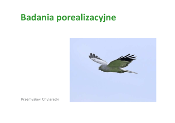 Badania porealizacyjne Przemysław Chylarecki Po co nam badania porealizacyjne? • Ocena zmian awifauny po oddaniu przedsięwzięcia do eksploatacji • Ocena rzeczywistej śmiertelności ptaków w wyniku kolizji Powinna się przekładać na: • Modyfikacje trybu pracy farmy, jeśli trzeba • Wzbogacenie wiedzy o realnych oddziaływaniach farm (w relacji do prognoz) Logika oceny zmian: BACI before-after/control-impact • identyfikacja rzeczywistych efektów przedsięwzięcia 18 18 16 16 14 14 Liczebność ptaków Liczebność ptaków • 12 10 8 6 12 10 8 6 4 4 2 2 0 0 przed po przed po Logika oceny zmian: BACI • • Skąd powierzchnie/dane kontrolne? • Rzeczywiste powierzchnie kontrolne załoŜone na etapie przedrealizacyjnym • Relatywne indeksy liczebności z krajowych programów monitoringowych • Dane z innych powierzchni wiatrakowych (walor standaryzacji technik zbierania danych i wspólnej bazy danych) Kiedy? Jak długo? • 3 lata: 1, 3 i 5 rok po oddaniu do eksploatacji Standard PSEW Zakres badań porealizacyjnych • Powtórka wszystkich modułów przedrealizacyjnych • Te same punkty, transekty, powierzchnie • • Skład gatunkowy i liczebność w cyklu rocznym • NatęŜenie wykorzystania przestrzeni powietrznej • Cenzus gatunków rzadkich i średniolicznych na całym terenie i w buforze 2 km wokół farmy • Identyfikacja koncentracji ptaków w buforze 2 km • Liczenia w standardzie MPPL PLUS nowy moduł – badania natęŜenia kolizji Zakres badań porealizacyjnych Badania kolizyjności 3 bloki badań • Poszukiwania ciał ofiar kolizji • Ocena wykrywalności ciał ofiar • Ocena tempa znikania ciał ofiar • Konieczne z uwagi na bardzo szybkie tempo usuwania ciał przez padlinoŜerców i ograniczoną wykrywalność • Surowe dane dotyczące liczby ofiar muszą być korygowane w oparciu o wyniki badań towarzyszących Badania kolizyjności Poszukiwania ciał ofiar kolizji Częste kontrole (co 7-10 dni lub częściej) • MoŜliwe rzadsze kontrole w pewnych okresach • Przeszukiwanie podłoŜa co 8-10 m w promieniu do 100-110 m od wieŜy 0.008 0.004 0.000 Density 0.012 • 0 50 100 odległość od siłowni [m] 150 Badania kolizyjności Poszukiwania ciał ofiar kolizji • Nie naleŜy a priori ograniczać promienia poszukiwań do 50-70 m • Rzadkie kontrole zdecydowanie mniej cenne • Nie naleŜy ograniczać się do okresu migracji – często szczyt śmiertelności latem • Szukamy nie tylko ciał, ale szczątków po ich konsumpcji przez padlinoŜerców • • np.więcej niŜ 2 lotki plus dalsze pióra „w jednym miejscu” Poszukiwaniom powinny towarzyszyć 3-4 serie eksperymentów do oceny tempa znikania ciał i wykrywalności Badania kolizyjności Ocena wykrywalności ciał • Ciała kilku ptaków (najlepiej dzikich) podrzucane na terenie kontroli przez osobę inną niŜ obserwator • Obserwator nie powinien wiedzieć o fakcie • Pozycja GPS uŜywana do identyfikacji ciała jako eksperymentalnego w protokole kontroli • DuŜe ciała mają zdecydowanie wyŜszą wykrywalność • Z reguły wykrywanych jest 30-50% ciał • Psy wykrywają 2-3x więcej ciał niŜ ludzie Badania kolizyjności Ocena tempa znikania ciał • Ciała kilku-kilkunastu ptaków (najlepiej dzikich) podrzucane na terenie kontroli • Tempo znikania oceniane w ramach codziennych kontroli przez pierwszych 5 dni, potem kontrole co 2-3 dni • Całość eksperymentu 30-40 dni • DuŜe ciała zostają zdecydowanie dłuŜej Badania kolizyjności Analiza danych • Wymaga dosyć skomplikowanych obliczeń • Szczególnie tempo znikania ciał ofiar – duŜe wyzwanie analityczne • • nowe metody zaproponowane ostatnio Dane skorygowane wykazują z reguły kilkukrotnie wyŜszą kolizyjność niŜ „surowe”