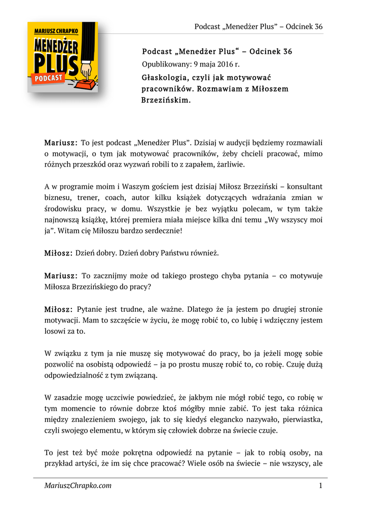 Podcast „Menedżer Plus” – Odcinek 36 MariuszChrapko.com 1