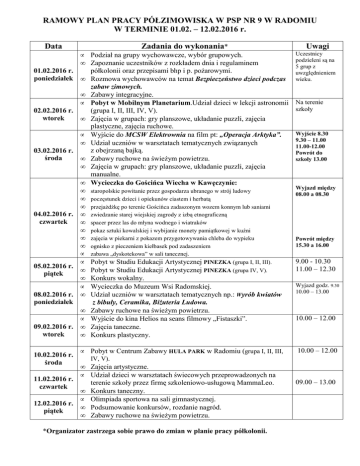 ramowy plan pracy półzimowiska