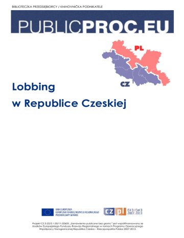 BIBLIOTECZKA PRZEDSIĘBIORCY / KNIHOVNIČKA PODNIKATELE Lobbing w Republice Czeskiej Projekt CZ.3.22/2.1.00/11.02605 „Zamówienia publiczne bez granic” jest współfinansowany ze środków Europejskiego Funduszu Rozwoju Regionalnego w ramach Programu Operacyjnego Współpracy Transgranicznej Republika Czeska – Rzeczpospolita Polska 2007-2013. BIBLIOTECZKA PRZEDSIĘBIORCY / KNIHOVNIČKA PODNIKATELE Informacje ogólne Przejrzysty lobbing stanowi naturalną i niezwykle pożądaną część funkcjonowania współczesnych państw demokratycznych. Regulacja kwestii lobbingu w formie przepisów ustawy w wielu krajach stała się ważnym elementem zwiększenia przejrzystości (transparentności) życia publicznego z uwagi na to, że umożliwia obywatelom większą kontrolę nad procesami legislacyjnymi. Potrzebę uchwalenia ustawy o lobbingu w Republice Czeskiej potwierdzają międzynarodowe rankingi badające poziom korupcji w poszczególnych państwach świata. W opublikowanym w roku 2010 rankingu „najbardziej skorumpowanych państwa świata” (tzw. ranking CPI) Czechy zajęły 53 miejsce na 178 badanych państw. Średnia ocena przyznana Republice Czeskiej wyniosła 4,6 (w skali dziesięciostopniowej, gdzie „10” oznacza kraj prawie bez korupcji a „0” państwo o niezwykle wysokim stopniu skorumpowania życia publicznego). Specjaliści w tej dziedzinie potwierdzają, że w Czechach powiązania korupcyjne istnieją zarówno na poziomie ogólnopaństwowym, regionalnym jak i gminnym. Częścią wspomnianych powiązań są politycy, szefowie spółek komunalnych lub przedsiębiorstw należących do Skarbu Państwa, urzędnicy, policjanci, prokuratorzy, adwokaci oraz przedsiębiorcy. Definicja lobbingu Zgodnie z definicją zawartą w dokumencie OECD pod tytułem „Zasady przejrzystości i integralności lobbingu” („Principy transparentnosti a integrity v lobbingu”) z 18 lutego 2010 roku lobbing to: „ustna lub pisemna komunikacja z Fot. www.scx.hu przedstawicielem władzy publicznej w celu wywarcia wpływu na uchwalanie ustaw, podejmowanie decyzji politycznych oraz decyzji urzędniczych…”. Słowo lobby oznacza w języku angielskim salę recepcyjną w hotelu lub parlamencie, stąd w dosłownym tego słowa znaczeniu „lobbying” to: "działalność wykonywana w lobby". Z biegiem czasu określeniem tym zaczęto opisywać praktyki kontaktowania się z politykami, szczególnie jeśli chodzi o lobby Izby Gmin lub amerykańskiego Kongresu. W powszechnej świadomości lobbing funkcjonuje jako czynność polegająca na wywieraniu wpływu przez zawodowych rzeczników interesów (lobbistów, lobbystów) na przedstawicieli władz publicznych. Projekt CZ.3.22/2.1.00/11.02605 „Zamówienia publiczne bez granic” jest współfinansowany ze środków Europejskiego Funduszu Rozwoju Regionalnego w ramach Programu Operacyjnego Współpracy Transgranicznej Republika Czeska – Rzeczpospolita Polska 2007-2013. 2 BIBLIOTECZKA PRZEDSIĘBIORCY / KNIHOVNIČKA PODNIKATELE Zapamiętaj ! Zgodnie z danymi rządowymi w Republice Czeskiej obecnie działa od 500 do 4500 osób zajmujących się działalnością lobbystyczną. Prawna regulacja lobbingu w Republice Czeskiej W Republice Czeskiej brak jest regulacji prawnych kompleksowo regulujących kwestię lobbingu. Pomimo tego, że w świadomości przeciętnego mieszkańca Republiki Czeskiej terminy „lobbing” czy też „lobbysta” mają zdeFot. www.scx.hu cydowanie negatywne konotacje to rząd Petra Nečasa nie zdecydował się do tej pory na skierowanie do parlamentu stosownej ustawy regulującej tą kwestię (pomimo bardzo zaawansowanych prac nad projektem, które przebiegały przede wszystkim w latach 2011-2012). Strategia Rządu Republiki Czeskiej w zakresie walki z korupcją na lata 2011 oraz 2012 zawierała zadanie numer 5.5., które polegało na opracowaniu i przedłożeniu rządowi do 31 grudnia 2012 roku „Analizę kompleksowego uregulowania prawnego w dziedzinie lobbingu” („Analýza komplexní právní úpravy v oblasti lobbingu“). Prace nad analizą były początkowo koordynowane przez Ministerstwo Spraw Wewnętrznych Republiki Czeskiej (Ministerstva vnitra). W listopadzie 2011 roku instytucją odpowiedzialną w tym zakresie stał się Urząd Rady Ministrów Republiki Czeskiej (Úřad vlády ČR). W wyniku przyspieszenia prac analitycznych dokument ten został opracowany wcześniej niż pierwotnie zakładano a Rząd zatwierdził analizę na podstawie uchwały nr 223 z dnia 4 kwietnia 2012 roku. Na podstawie wspomnianej uchwały Rząd Republiki Czeskiej zobowiązał Panią Wicepremier Rządu RCz do opracowania projektu ustawy regulującej kwestie lobbingu w Republice Czeskiej. Projekt CZ.3.22/2.1.00/11.02605 „Zamówienia publiczne bez granic” jest współfinansowany ze środków Europejskiego Funduszu Rozwoju Regionalnego w ramach Programu Operacyjnego Współpracy Transgranicznej Republika Czeska – Rzeczpospolita Polska 2007-2013. 3 BIBLIOTECZKA PRZEDSIĘBIORCY / KNIHOVNIČKA PODNIKATELE Najczęstszymi, powtarzanymi podczas konsultacji międzyresortowych postulatami były: - kwestia jak najszerszego ujęcia definicji lobbingu, - określenie zasad obowiązkowego raportowania w zakresie kontaktów pomiędzy lobbystami oraz ich grupami docelowymi. W trakcie przeprowadzonych konsultacji międzyresortowych niemniej liczna grupa specjalistów postulowała odmienne podejście do kwestii regulacji lobbingu polegające na ograniczeniu obowiązków nakładanych na lobbystów oraz powątpiewaniu w sens wprowadzania w życie tego typu ustawy. Fot. www.scx.hu Ponadto wiele opinii wyrażało wątpliwość odnośnie zgodności przepisów ustawy z Konstytucją Republiki Czeskiej. Z uwagi na znaczne rozbieżności, które powstały podczas konsultacji międzyresortowych projektodawcy ustawy skierowali do Rządu RCz informację na temat postępów w przygotowaniu tekstu ustawy o lobbingu. Wspomniana informacja została przedłożona Rząd