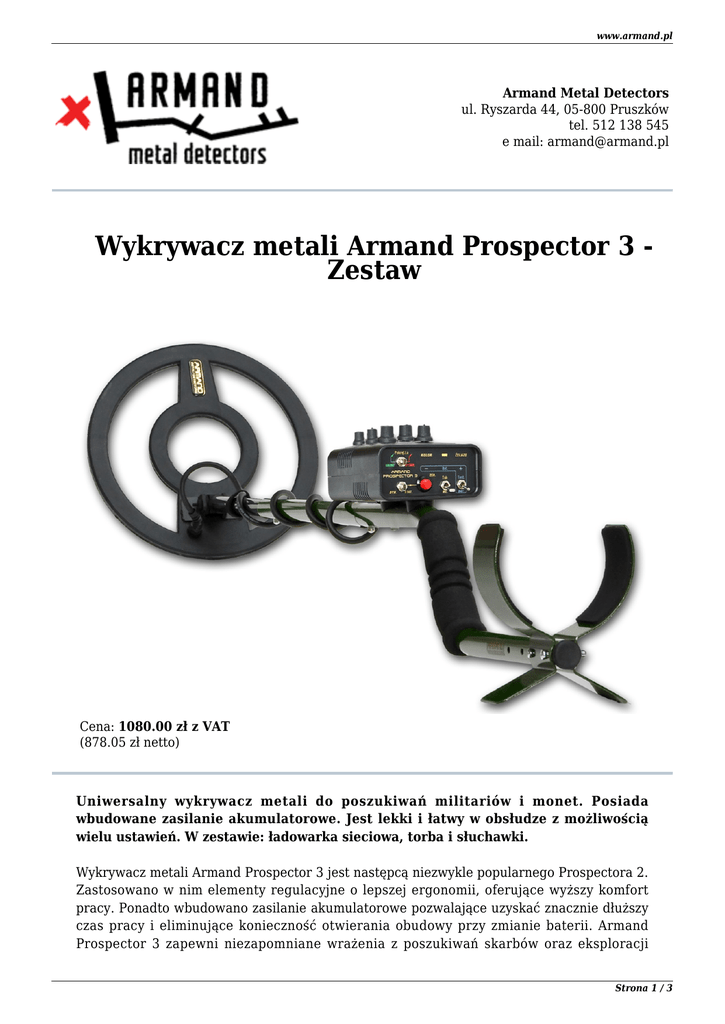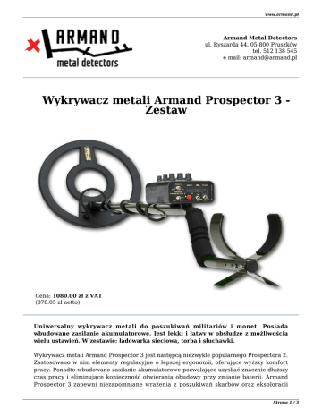 Wykrywacz metali Armand Prospector 3 - Zestaw