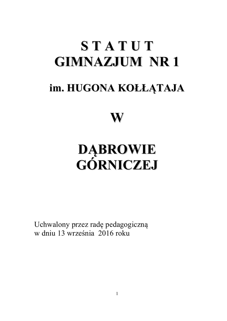 statut gimnazjum nr 1 - Gimnazjum nr 1 w Dąbrowie Górniczej