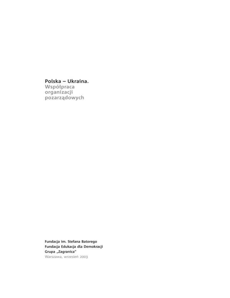 Polska – Ukraina. Wspó³praca organizacji pozarz¹dowych Fundacja im. Stefana Batorego Fundacja Edukacja dla Demokracji Grupa „Zagranica” Warszawa, wrzesieñ 2003 Fundacja im. Stefana Batorego ul. Sapie¿yñska 10a 00-215 Warszawa tel. |48-22| 5360200 fax |48-22| 5360220 [email protected] www.batory.org.pl Autorzy tekstów: Gra¿yna Czubek, Piotr Kosiewski, Piotr Tyszko, Anna Wróbel Konsultacja: Krzysztof Stanowski Zdjêcie na ok³adce: Wies³aw Huk – Mecz siatkówki miêdzy samorz¹dowcami z Ukrainy i Polski na przejœciu granicznym Budomierz-Hruszew Zdjêcia: Urszula Doroszewska (s. 32), Wies³aw Huk (s. 38), Pawe³ Juszczuk (s. 30), Rostys³aw Kramar (s. 40), O³esia Sanocka (s. 27, 28), Krzysztof Stanowski (s. 33), Marija Wan¿a (s. 29), archiwum Lwowskiego Oddzia³u Asocjacji Miast Ukrainy (s. 36, 37), archiwum Centrum Szkoleniowego FRDL w Szczecinie (s. 34, 35). © Copyright for texts by Fundacja im. Stefana Batorego, Warszawa 2003 © Copyright for text „Wspólne problemy, wspólne dzia³ania” by Fundacja Edukacja dla Demokracji, Warszawa 2003 © Copyright for photos by authors. Opieka artystyczna nad publikacjami Fundacji im. Stefana Batorego: Marta Kusztra Opracowanie graficzne i sk³ad: Micha³ Poloñski ISBN 83-89406-12-08 Publikacja jest rozpowszechniana bezp³atnie. Warszawa, wrzesieñ 2003 Spis treœci Lata doœwiadczeñ i perspektywa europejska 7 Wspólne problemy, wspólne dzia³ania 16 Przyk³ady dzia³añ Historia – dzieli nas czy zbli¿a? Pomoc potrzebuj¹cym Berdiañsk: miasto otwarte Tatarzy krymscy – witamy w Europie Wsparcie reformy samorz¹dowej 25 27 29 31 33 Akcja Czysta Ukrajina – czysta Ziemlia Rozwój gospodarczy Niezale¿na prasa Razem do Europy 36 38 40 41 Noty o polskich organizacjach 45 Grupa „Zagranica” 95 Indeks instytucji 98 Lata doœwiadczeñ i perspektywa europejska Piotr Kosiewski Na prze³omie 2000 i 2001 roku w polskiej prasie ukaza³y siê dwa wa¿ne teksty dotycz¹ce polskiej polityki wschodniej: Bart³omieja Sienkiewicza og³oszony w „Tygodniku Powszechnym” i Wojciecha Maziarskiego opublikowany przez „Gazetê Wyborcz¹”1 . Zw³aszcza ten pierwszy wywo³a³ liczne polemiki i oskar¿enia, ³¹cznie z podejrzeniami o kwestionowanie dotychczasowej polityki wobec naszych wschodnich s¹siadów2 . Jednak temperatura tego sporu i liczba polemik mog¹ œwiadczyæ, ¿e poruszono kwestie powa¿ne, a sprawa naszych relacji ze wschodnimi s¹siadami uwa¿ana jest za jeden z istotnych tematów w dyskusji publicznej. Jak podkreœla³ Sienkiewicz, jego – tak krytykowany – g³os by³ jedynie prób¹ podsumowania osi¹gniêæ i wypunktowania niepowodzeñ, a tak¿e namys³em nad realnymi mo¿liwoœciami pañstwa polskiego (i posiadanymi narzêdziami). Nie wnikaj¹c jednak w zasadnoœæ stawianych przez niego zarzutów wobec dotychczasowych dzia³añ, ani te¿ nie oceniaj¹c proponowanej przez niego strategii, trudno nie zauwa¿yæ, ¿e w swej analizie Sienkiewicz pomin¹³ istotny element wspó³pracy miêdzy Polsk¹ a jej wschodnimi s¹siadami, jakim s¹ kontakty 1 2 Bart³omiej Sienkiewicz, Pochwa³a minimalizmu, „Tygodnik Powszechny”, 24-31 grudnia 2000; Wojciech Maziarski, Gdzie jest Twój s¹siad?, „Gazeta Wyborcza”, 6-7 stycznia 2001. Wybór g³osów z tej dyskusji mo¿na znaleŸæ na stronie internetowej www.batory.org.pl/debaty, tam te¿ opublikowano pe³ny zapis debaty O polskiej polityce wschodniej, zorganizowanej przez Fundacjê im. Stefana Batorego i redakcjê „Tygodnika Powszechnego” (skrót zosta³ zamieszczony w „Tygodniku Powszechnym”, 22 kwietnia 2001). Polska – Ukraina. Wspó³praca organizacji pozarz¹dowych 7 Polska – Ukraina. Wspó³praca organizacji pozarz¹dowych spo³eczne, a zw³aszcza dzia³alnoœæ organizacji pozarz¹dowych po 1989 roku (nawet je¿eli uznamy, ¿e w porównaniu z wymian¹ gospodarcz¹ ten typ wspó³pracy to drobny element relacji miêdzy pañstwami). Szczególne znaczenie ta dzia³alnoœæ ma w stosunkach polsko-ukraiñskich, jednak czêsto siê o niej zapomina. Przygl¹daj¹c siê zatem wspó³pracy polsko-ukraiñskich organizacji pozarz¹dowych po roku 1989, mo¿na podzieliæ j¹ – za Krzysztofem Stanowskim3 – na trzy etapy. Pierwszy – obejmuj¹cy lata 1989-1994 – to nawi¹zywanie kontaktów z partnerami na Ukrainie. Podjê³y siê tego organizacje maj¹ce swe korzenie w dzia³alnoœci opozycyjnej. Wœród nich by³y miêdzy innymi: Fundacja Edukacja dla Demokracji, Helsiñska Fundacja Praw Cz³owieka, Fundacja Oœrodka KARTA, Fundacja Solidarnoœci Polsko-Czesko-S³owackiej czy te¿ Instytut na rzecz Demokracji w Europie Wschodniej IDEE. W 1991 roku powo³ane zostaje Centrum Analiz Spo³eczno-Ekonomicznych (CASE) – pierwszy niezale¿ny oœrodek badawczy. W tym te¿ czasie w Fundacji im. Stefana Batorego powstaje Forum Europy ŒrodkowoWschodniej, prowadz¹ce w imieniu Fundacji projekty miêdzynarodowe oraz program Wschód-Wschód, wspieraj¹cy finansowo dzia³ania innych organizacji. Dotacje na wspó³pracê polsko-ukraiñsk¹ by³y udzielane tak¿e przez fundacje zagraniczne, przede wszystkim amerykañskie: National Endowment for Democracy, Fundacjê Forda i Fundacjê Motta. Drugi etap obejmuje lata 1995-1998. W tym czasie wiele organizacji pozarz¹dowych, maj¹cych du¿e osi¹gniêcia w dzia³aniach krajowych, otwiera swoje programy miêdzynarodowe – by wymieniæ tylko Fundacjê Rozwoju Demokracji Lokalnej i Fundacjê Wspomagania Wsi. Natomiast Domy Pojednania i Spotkañ, które zosta³y powo³ane do prowadzenia dzia³añ sprzyjaj¹cych porozumieniu polsko-niemieckiemu, poszerzy³y swoje programy o uczestników ze Wschodu – przede wszystkim z Ukrainy (ale tak¿e Bia³orusi). Kolejny etap wspó³pracy rozpocz¹³ siê w 1999 roku. Zauwa¿yæ mo¿na znacz¹cy wzrost liczby organizacji wspó³pracuj¹cych z partnerami z Ukrainy. W ró¿ne formy dzia³ania zaanga¿owa³y s¹ niemal¿e wszystkie licz¹ce siê polskie organizacje po3 Patrz wyst¹pienie n