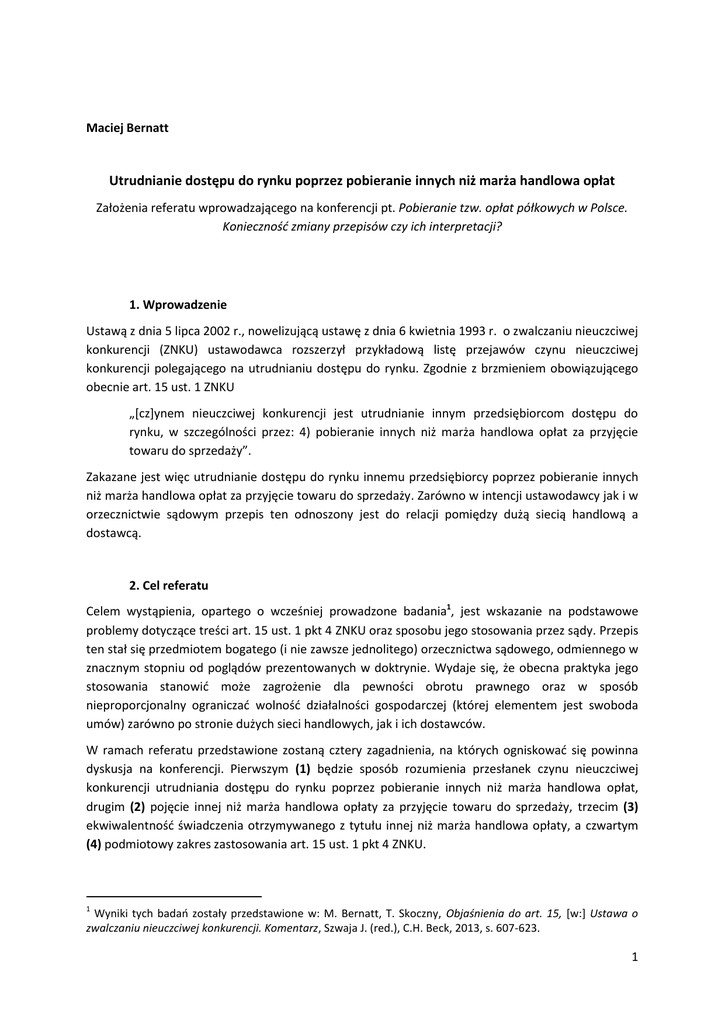 Banasiński, M. Bychowska, Utrudnianie dostępu do rynku poprzez pobieranie innych niż marża handlowa opłat