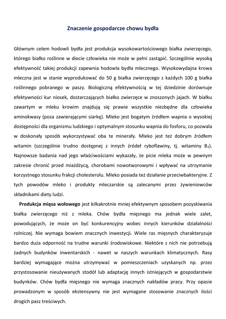 Znaczenie gospodarcze chowu bydła