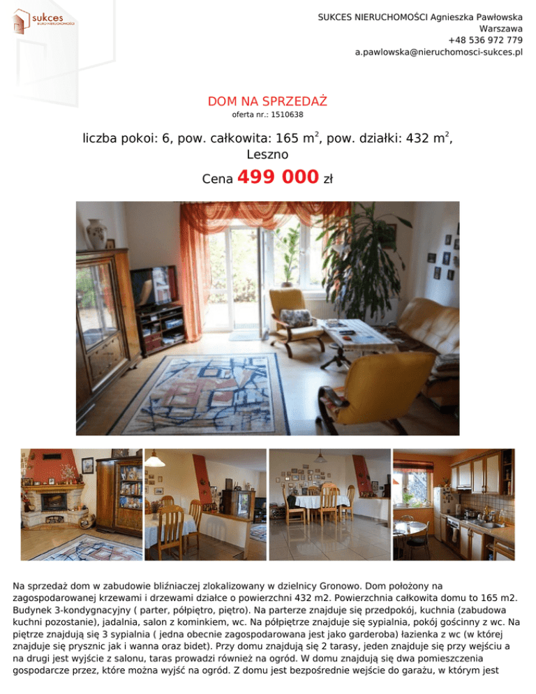 Cena 499 000 zł - SUKCES NIERUCHOMOŚCI Agnieszka Pawłowska