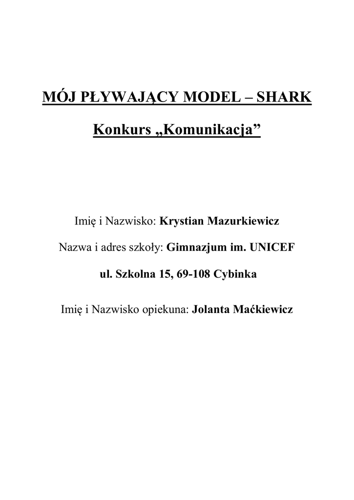 MÓJ PŁYWAJĄCY MODEL – SHARK Konkurs „Komunikacja”