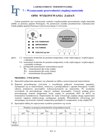 7 – Wyznaczanie przewodności cieplnej materiału OPIS