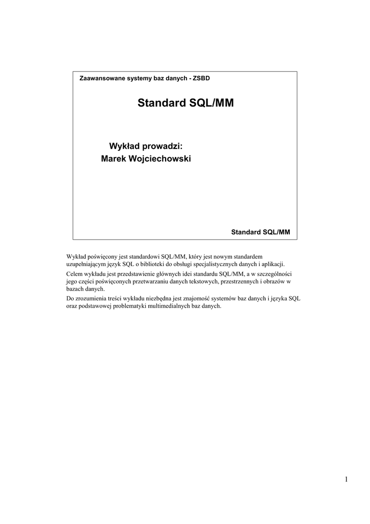 Wykład poświęcony jest standardowi SQL/MM, który jest nowym standardem