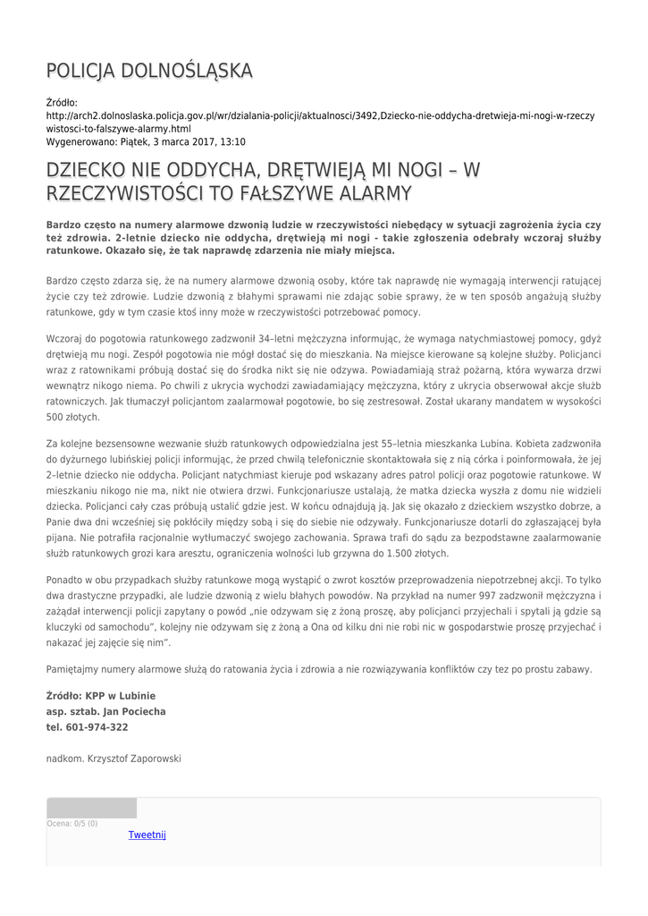 POLICJA DOLNOŚLĄSKA DZIECKO NIE ODDYCHA, DRĘTWIEJĄ