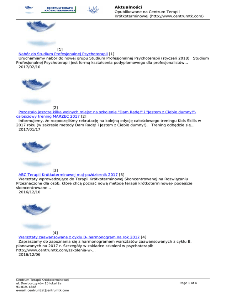 Aktualności - Centrum Terapii Krótkoterminowej