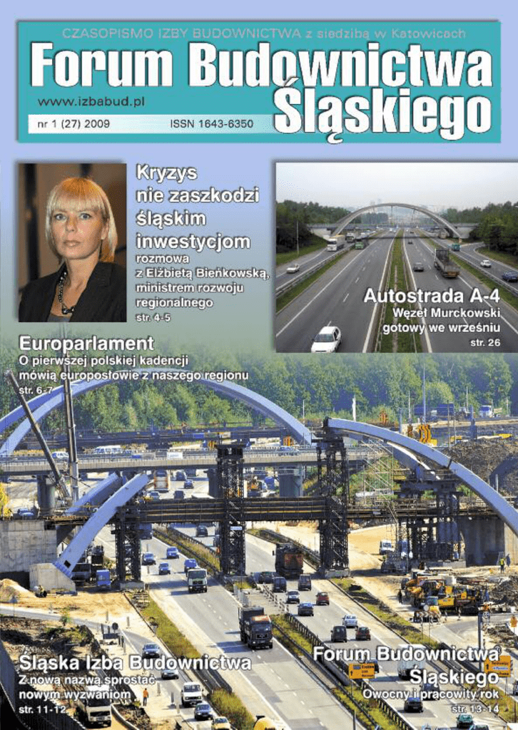 W NUMERZE: Moim zdaniem ............................................................................................. DZIAŁANIA RZĄDU Kryzys nie zaszkodzi śląskim inwestycjom Rozmowa z ELŻBIETĄ BIEŃKOWSKĄ, ministrem rozwoju regionalnego ............................................................. PARLAMENT EUROPEJSKI O pierwszej polskiej kadencji mówią śląscy europosłowie: prof. Jerzy Buzek, prof. Genowefa Grabowska, dr Jan Olbrycht, prof. Adam Gierek ................................................................................... REGION Najbardziej atrakcyjne województwo Rozmowa ze ZBYSZKIEM ZABOROWSKIM, Wicemarszałkiem Województwa Śląskiego ......................................................................... Budujemy nawet w kryzysie Rozmowa z KAZIMIERZEM GÓRSKIM, prezydentem Sosnowca ......... ŚLĄSKA IZBA BUDOWNICTWA Z nową nazwą sprostać nowym wyzwaniom .......................................... FORUM BUDOWNICTWA ŚLĄSKIEGO Owocny i pracowity rok ........................................................................... Podpisanie umowy z Politechniką Śląską .............................................. Polski Związek Inżynierów i Techników Budownictwa............................. Polskie Zrzeszenie Inżynierów i Techników Sanitarnych ........................ Stowarzyszenie Inżynierów i Techników Górnictwa ............................... Zjazd Śląskiej Okręgowej Izby Inżynierów Budownictwa ........................ EDUKACJA Czy obowiązkowe szkolenia? ................................................................. NIERUCHOMOŚCI Niestabilny rynek Rozmowa z Arkadiuszem Borkiem, prezesem zarządu Instytutu Gospodarki Nieruchomościami .................. FORUM GOSPODARCZE - ŚLĄSK 2009 Dobry prognostyk na przyszłość ............................................................. SIBEX 2009 Na targach kryzysu nie widać ................................................................. PRAWO BUDOWLANE I ARCHITEKTURA Rozmowa z architektem i urbanistą dr TOMASZEM TACZEWSKIM z Politechniki Śląskiej w Gliwicach .......................................................... EKOLOGIA Czarna Przemsza mniej czarna .............................................................. NOWE ŚLĄSKIE INWESTYCJE Węzeł Murckowski gotowy we wrześniu ................................................. Zdrowych, Pogodnych Świąt Wielkanocnych, pełnych wiary, nadziei i miłości. Radosnego, wiosennego nastroju, serdecznych spotkań w gronie rodziny i wśród przyjaciół MOIM ZDANIEM 3 4 6 8 10 11 13 14 15 16 17 19 18 20 21 22 23 24 26 Szanowni Państwo! Blisko 40 tys. członków indywidualnych, jako kadra inżynieryjno-techniczna oraz 300 organizacji gospodarczych stanowi po pierwszym roku działalności potencjał organizacyjny „Forum Budownictwa Śląskiego”. Platformy współdziałania samorządów zawodowych i gospodarczych reprezentujących sektory budownictwa, ekologii, nieruchomości i górnictwa, głównie z terenu województwa śląskiego. Jest to kolejne potwierdzenie potrzeby integracji środowisk budowlanych oraz coraz większego przekonania o konieczności bezpośredniego wpływu na swój status zawodowy – inżyniera, technika oraz na warunki prowadzonej działalności gospodarczej. Dalszy udział w opiniowaniu nowelizacji ustawy „Prawo Budowlane”, współdziałanie z resortami rządu oraz władzami województwa, miast i powiatów regionu w kreowaniu nowych inwestycji i kontraktów budowlanych, efektywne wykorzystanie w tym celu środków z funduszy UE – to najbliższe działania uczestników „Forum”. Zawarte w dniu 2 kwietnia 2009 r. „Porozumienie o współpracy” uczestników „Forum” z Politechniką Śląską w Gliwicach ma na celu zwiększenie skuteczności tych działań. Z tych samych powodów, po 11 latach działalności, członkowie Izby Budownictwa z siedzibą w Katowicach postanowili przyjąć nową nazwę i tożsamość jako „Śląska Izba Budownictwa”. Uczynili to w przekonaniu, że jest to właściwy okres aby ta organizacja była bardziej uniwersalna, otwarta na przyjęcie w swój poczet kolejne podmioty gospodarcze budownictwa, spółdzielczości mieszkaniowej, gospodarki komunalnej i jednostki naukowe. By zwiększyć swą reprezentatywność i efektywność działania jako silna organizacja pozarządowa. Nowa nazwa ma usytuować nasz samorząd gospodarczy nie tylko na terenie Polski, lecz także wpisując ją w europejską mapę regionów, które tworzą tożsamość Unii Europejskiej. Rozszerzanie współdziałania z strukturami Parlamentu i Komisji Europejskiej, które w coraz większym zakresie stanowią nowe regulacje prawne we wszystkich obszarach działalności polskiego budownictwa, staje się obecnie nieodzowną koniecznością. Tadeusz Wnuk życzy Prezydent Izby, Rada, Prezydium i Biuro Śląskiej Izby Budownictwa oraz redakcja „Forum Budownictwa Śląskiego” Prezydent Izby Budownictwa z siedzibą w Katowicach Forum Budownictwa Śląskiego - 1 (27) 2009 3 DZIAłANIA RZĄDu Kryzys nie zaszkodzi śląskim inwestycjom Rozmowa z ELŻBIETĄ BIEŃKOWSKĄ, ministrem rozwoju regionalnego – W jaki sposób światowy kryzys i osłabienie złotego wpłynęły na możliwości pozyskiwania i wykorzystywania przez Polskę funduszy unijnych? – W sytuacji spowolnienia gospodarczego z jakim mamy obecnie do czynienia Fundusze Europejskie mają szczególne znaczenie. Są to dla nas dodatkowe, i co najważniejsze bezzwrotne, pieniądze na inwestycje. Zgodnie z rządowym „Planem stabilności i rozwoju” w tym roku wyślemy do Komisji Europejskiej wnioski płatnicze na kwotę 16,8 mld zł. Duża skala dofinansowania ze strony UE powinna pomóc złagodzić ewentualne negatywne procesy zachodzące w gospodarce. Chcemy również rozłożyć płatności w czasie, by uniknąć kumulacji wydatków pod koniec bieżącej perspektywy finansowej. Na 2010 rok zaplanowaliśmy taki poziom wykorzystania środków u