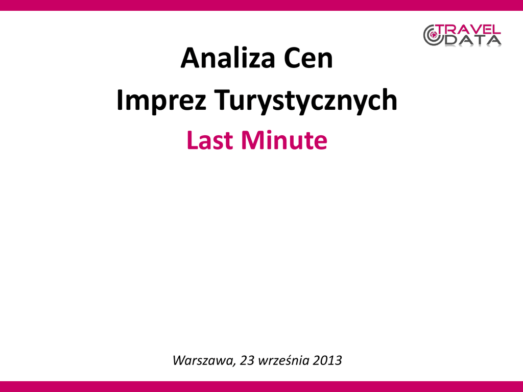 Analiza Cen Imprez Turystycznych Last Minute Warszawa, 23 września 2013 Założenia dotyczące Analizy Cen Imprez Turystycznych Data Analizy: 20.09.2013 • • • • data planowanego wyjazdu turystycznego LAST MINUTE: 30.09.2013 – 13.10.2013 impreza 7-dniowa, wylot z Warszawy, cena 1 osoby dorosłej w pokoju 2-osobowym Przeanalizowano: • • • 2 400 cen pokoi hotelowych z 1 357 hoteli 61 różnych destynacji 31 touroperatorów Średnia cena • • • średnia cena to średnia z cen osoby dorosłej w pokoju 2-osobowym w danej destynacji po odjęciu 1/3 cen najdroższych i najmniej popularnych wśród polskich klientów hoteli z danej kategorii do zestawień cen średnich wzięto pod uwagę touroperatorów mających w ofercie co najmniej 3 hotele z danej kategorii i z danej destynacji na destynacjach tureckich, gdzie część touroperatorów ma w ofercie bardzo dużo hoteli, w zdecydowanej większości nie kupowanych przez polskich klientów, średnią cenę wyliczano w oparciu o najtańsze 40 hoteli najczęsciej wybieranych przez klientów 2 Założenia dotyczące Analizy Cen Imprez Turystycznych Wersja Analizy • Propozycja wyjściowa, która jest stale uzupełniana i modyfikowana, w tym również w oparciu o uwagi i sugestie zgłaszane przez jej odbiorców. Odbiorcy • Agenci turystyczni, partnerzy portalu www.wczasopedia.pl, Główne cele analizy • Dostarczenie odbiorcom analizy dostatecznie szerokiej i aktualnej wiedzy o kształtowaniu się poziomów i trendów cenowych najważniejszych produktów w branży turystyki wyjazdowej. Przewidywane następne kroki • • • • zebranie uwag i sugestii użytkowników odnośnie zawartości i formy analizy rozszerzanie palety analizowanych produktów (nowe daty wyjazdu i destynacje) analizy kształtowania się cen produktów w czasie wprowadzenie porównań między-destynacyjnych. 3 RYNEK: LAST MINUTE All Inclusive Największe zmiany średnich cen imprez turystycznych w okresie 14.09.2013 – 20.09.2013 Największe wzrosty/spadki średniej ceny Last Minute vs Last Minute z poprzedniego tygodnia W okresie 14.09.2013 – 20.09.2013 średnia cena imprezy turystycznej w ofercie Last Minute spadła o 53 złote -371 BeeFree -171 Wezyr Holidays Viva Club -109 -108 W poprzednim tygodniu średnia cena spadła o 21 złotych Itaka Best Reisen 142 Ecco Holidays 145 Comfort Club Grecos 4 146 514 RYNEK: LAST MINUTE All Inclusive Największe zmiany średnich cen imprez turystycznych w okresie 14.09.2013 – 20.09.2013 Największe wzrosty/spadki średniej ceny Last Minute vs Last Minute z poprzedniego tygodnia W okresie 14.09.2013 – 20.09.2013 średnia cena imprezy turystycznej w ofercie Last Minute spadła o 53 złote -415 Hiszpania: Baleary -294 Turcja: Riwiera -279 Grecja: Dodekanez -210 Maroko W poprzednim tygodniu średnia cena spadła o 21 złotych 35 Hiszpania: Wyspy Kanaryjskie Egipt: Synaj 63 80 Egipt: Wybrzeże 567 5 Hiszpania: Wybrzeże RYNEK: LAST MINUTE All Inclusive Ceny średnie hoteli 4 – 4,5 gwiazdkowych: 7 dni + All Inclusive + z Warszawy Zestawienie największych spadków/wzrostów średnich cen hoteli 4* LM w ostatnim tygodniu na najważniejszych kierunkach kierunekc Średnia cena (zmiana ceny) Bułgaria --------- ---------- Tunezja 2148 zł Egipt: Synaj Największy spadek cen Największy wzrost/zmiana cen --------------------- --------- -------------------- ---------- (- 121 zł) BeeFree - 134 zł Exim Tours + 107 zł 2203 zł (+ 59 zł) BeeFree - 430 zł Ecco Holidays + 292 zł Egipt: Wybrzeże 2294 zł (- 49 zł) BeeFree - 457 zł Viva Club + 394 zł Turcja: Riwiera 2334 zł (- 198 zł) Viva Club -389 zł TUI + 239 zł Grecja: Kreta 2370 zł (- 150 zł) Wezyr - 120 zł 7islands + 96 zł Hiszpania: Wyspy Kanaryjskie 3478 zł (+ 15 zł)) Itaka - 183 zł Alfa Star + 271 zł RYNEK 4* 2542 zł (- 40 zł) 6 RYNEK: LAST MINUTE All Inclusive Różnice cen średnich Last Minute wobec cen Last Minute z poprzedniego tygodnia kategoria hotelu Średnia różnica ceny Kierunek / najmniejsza różnica Kierunek / największa różnica 3 - 3,5 gwiazdki -123 zł (- 5,4%) Egipt: Wybrzeże + 77 zł (+ 3,7%) Hiszpania: Baleary -372 zł (- 12,9%) 4 - 4,5 gwiazdki - 145 zł (- 5,2%) Hiszpania: Wybrzeże + 414 zł (+14,9%) Hiszpania: Baleary -473 zł (- 13,3%) 5 gwiazdek -170 zł (-5,7%) Egipt: Wybrzeże + 117zł (+4,7%) RAZEM - 133 zł (- 5,0%) Portugalia -390zł (- 9,3%) Największe przeceny Last Minute Najmniejsze przeceny Last Minute wykazywały oferty biura BeeFree (2 wykazywały oferty biura podróży przypadki) Itaka (2 przypadki) 7 Hiszpania, Wyspy Kanaryjskie: LAST MINUTE All Inclusive Ceny średnie hoteli 3 – 3,5 gwiazdkowych: 7 dni + All Inclusive + z Warszawy Wzrost/spadek średniej ceny vs poprzedni tydzień HOTELE 3 – 3,5 gwiazdki: Średnia cena w zł za 1 os. w pokoju 2 os. oraz ilość hoteli do wyliczenia średniej ceny -1 500 zł -1 300 zł -1 100 zł -900 zł -700 zł -500 zł -300 zł -100 zł 100 zł 2 665,67 zł Alfa Star 183 zł ilość hoteli; 3 2 740,11 zł Itaka -97 zł ilość hoteli; 9 2 808,07 zł TUI 3 zł ilość hoteli; 15 2 991,67 zł Rainbow Tours 33 zł ilość hoteli; 3 3 122,70 zł Neckermann 102 zł ilość hoteli; 10 3 237,00 zł Ecco Holiday -54 zł ilość hoteli; 5 Orlica 3 - 3,5 Hiszpania: Wyspy Kanaryjskie 3 275,00 zł 0 zł ilość hoteli; 5 0 1000 2000 3000 4000 300 zł 5000 8 6000 7000 8000 9000 10000 Hiszpania, Wyspy Kanaryjskie : LAST MINUTE All Inclusive Ceny średnie hoteli 4 – 4,5 gwiazdkowych: 7 dni + All Inclusive + z Warszawy Wzrost/spadek średniej ceny vs poprzedni tydzień HOTELE 4 – 4,5 gwiazdki: Średnia cena w zł za 1 os. w pokoju 2 os. oraz ilość hoteli do wyliczenia średniej ceny -2 500 zł -2 000 zł -1 500 zł -1 000 zł -500 zł 3 066,50 zł Itaka 3 243,82 zł -30 zł ilość hoteli; 22 3 525,20 zł Rainbow Tours 87 zł ilość hoteli; 10 3 626,33 zł Neckermann 500 zł -183 zł ilość hoteli; 16 TUI 0 zł 45 zł ilość hoteli; 36 3 670,43 zł Alfa Star 271 z
