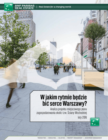W jakim rytmie będzie bić serce Warszawy? Analiza projektu miejscowego planu zagospodarowania okolic tzw. Ściany Wschodniej luty 2016 TRANSACTION CONSULTING VALUATION PROPERTY MANAGEMENT INVESTMENT MANAGEMENT SPIS TREŚCI Wstęp ................................................................ 3 Zarys ogólny ................................................... 4 Analiza projektu ............................................. 6 Nasze propozycje ........................................... 8 Okiem eksperta Z perspektywy doradcy ......................... 10 Z perspektywy architekta ..................... 12 Autorzy: Anna Staniszewska, Dyrektor Działu Analiz Rynkowych i Doradztwa Europa Środkowo-Wschodnia, BNP Paribas Real Estate Szymon Dołęga, Asystent Działu Analiz Rynkowych i Doradztwa, BNP Paribas Real Estate BNP Paribas Real Estate Poland Sp. z o.o. Atrium Tower, al. Jana Pawła II 25 00-854 Warszawa Tel.: +48 22 653 44 00 www.realestate.bnpparibas.pl Firma BNP Paribas Real Estate jest częścią Grupy BNP Paribas KRS 0000123245 Sąd Rejonowy dla M. St. Warszawy, XII Wydział Gospodarczy KRS, Regon 011890235, NIP 527-11-37-593, kapitał zakładowy: 14 200 000 PLN Nota prawna: Wszystkie prawa zastrzeżone. Niniejszy raport został opracowany przez BNP Paribas Real Estate. Wszystkie dane zawarte w niniejszej publikacji zostały dokładnie sprawdzone. Jednakże autorzy raportu nie ponoszą odpowiedzialności za jakiekolwiek szkody lub straty poniesione w wyniku wykorzystania opublikowanych w nim informacji. Kopiowanie, modyfikowanie lub wykorzystywanie treści niniejszej publikacji bez zgody autorów jest zabronione na mocy przepisów obowiązującego prawa. Dopuszcza się cytowanie treści niniejszej publikacji pod warunkiem wyraźnego określenia źródła pochodzenia takiego cytatu. Wstęp W jakim rytmie będzie bić serce Warszawy? - luty 2016 Długo oczekiwany projekt miejscowego planu zagospodarowania przestrzennego (zwany dalej MPZP) okolic tzw. Ściany Wschodniej leżącej w samym sercu centrum Warszawy jest już gotowy. Obejmuje on obszar zamknięty ulicami Królewską, Marszałkowską, Hożą, Nowym Światem oraz Krakowskim Przedmieściem. Anna Staniszewska D y re k to r D z i ału A n a l i z R y n k o wych i D o ra d z t w a , Europa Ś ro d k o w o -W schodnia B N P Pa r i b a s Real E s ta te Podczas gdy przestrzenie przy głównych ulicach handlowych w Warszawie podlegają sukcesywnie pozytywnym zmianom, niektóre z proponowanych w projekcie ograniczeń i rozwiązań mogłyby wywrzeć niekorzystny wpływ na sytuację społeczno-ekonomiczną w centrum miasta. Istnieje ryzyko, iż w przyszłości dojdzie do sytuacji, gdzie na renomowanych ulicach takich jak Nowy Świat, Chmielna, plac Trzech Krzyży, Bracka czy Mokotowska1 będziemy oglądać niszczejące budynki, puste witryny sklepowe i krótkoterminowych, nieznanych najemców; przy jednoczesnym braku oferty z zakresu podstawowych towarów i usług. Na szczęście nie jest jeszcze zbyt późno na wprowadzenie odpowiednich poprawek. Warunkiem koniecznym będzie uzyskanie wyważonego połączenia zróżnicowanych funkcji użytkowych, co pozwoli wszystkim zainteresowanym stronom na czerpanie korzyści ze swojego współistnienia. Dlaczego? Z tego prostego powodu – w sektorze handlu do tanga tak naprawdę trzeba czworga: • Władze miasta – ich zadaniem jest zrozumienie potrzeb mieszkańców miasta i realizacja spójnej strategii rozwoju obszarów miejskich w kontekście struktury obecnych funkcji użytkowych, wielkości powierzchni, przestrzeni publicznych, a także rozwiązań w zakresie dostępności odpowiedniej ilości miejsc parkingowych oraz infrastruktury transportowej. • Mieszkańcy, pracownicy i turyści – tworzą fundament miejskiego życia i atmosfery i generują popyt na wszelkiego rodzaju dobra i usługi. • Najemcy (a wśród nich sieci handlowe, branża gastronomiczna czyli kawiarnie, bary, restauracje oraz usługodawcy) – odpowiedzialni za przedstawienie kompleksowej oferty konsumentom. • Właściciele nieruchomości – w ich gestii leży zapewnienie najemcom odpowiednich lokali po takich stawkach czynszu, które umożliwią zarówno wynajmującym, jak i najemcom osiągnięcie zysków. WŁAŚCICIELE WŁADZE MIASTA MIESZKAŃCY PRACOWNICY TURYŚCI SIECI HANDLOWE USŁUGI GASTRONOMIA 1. Ulica Mokotowska nie jest objęta samym planem, jednakże jest ona częścią omawianej arterii handlowej. zarys ogólny W jakim rytmie będzie bić serce Warszawy? - luty 2016 BNP Paribas Real Estate, międzynarodowa firma świadcząca usługi doradztwa z zakresu nieruchomości, wraz z działającym na skalę globalną biurem architektonicznym Chapman Taylor, mają przyjemność zaprezentować raport specjalny zatytułowany W jakim rytmie będzie bić serce Warszawy? Analiza projektu miejscowego planu zagospodarowania okolic tzw. Ściany Wschodniej. Skupia się on w szczególności na obszarze obejmującym główne ulice handlowe: Nowy Świat, Chmielna, plac Trzech Krzyży, Bracka oraz Mokotowska. Dokładne położenie i granice omawianego obszaru przedstawione są na mapie poniżej. ś B. Bc o Ma Dynasy Sewerynów Cicha Mysia wia Nowy Ś cka S t. L ore nza t Ksi Wspólna ążę ca pl. Trzech Krzyży Mo kot o ws ka U as ti ca J. Stan Skarpie Wilcza Al. Na B. Prus a M. Konop nickiej a Wiejsk Hoża Aleje Wilcza Bra ks. I. Skorupki na Browarna a Rondo Ch. de Gaulle’a Żurawia Krucza Wilcza MARSZAŁKOWSKA Poznańska Emilii Plater Wilcza Źródło: BNP Paribas Real Estate Żurawia A. ks. I. Skorupki Grabowskiego Wspólna Hoża A. Krywułta k ac Ś w. B arbary Hoża W-WA POWIŚLE Smolna Br Nowogrodzka Żurawia Wspólna Okólnik Foksal AL. JEROZOLIMSKIE Parkingowa Emilii Plater Poznańska J. Pankiewicza Nowogrodzka Ta m k a Szczygla J. Przybosia Chmielna Krucza Rondo R. Dmowskiego Zaj c zyńgo s kie Ordyna cka M. Kopernika alna CENTRUM AL. JEROZOLIMSKIE ika Kopern Szpit Chmielna K.I. Gałczyńskiego W. Górskiego Widok