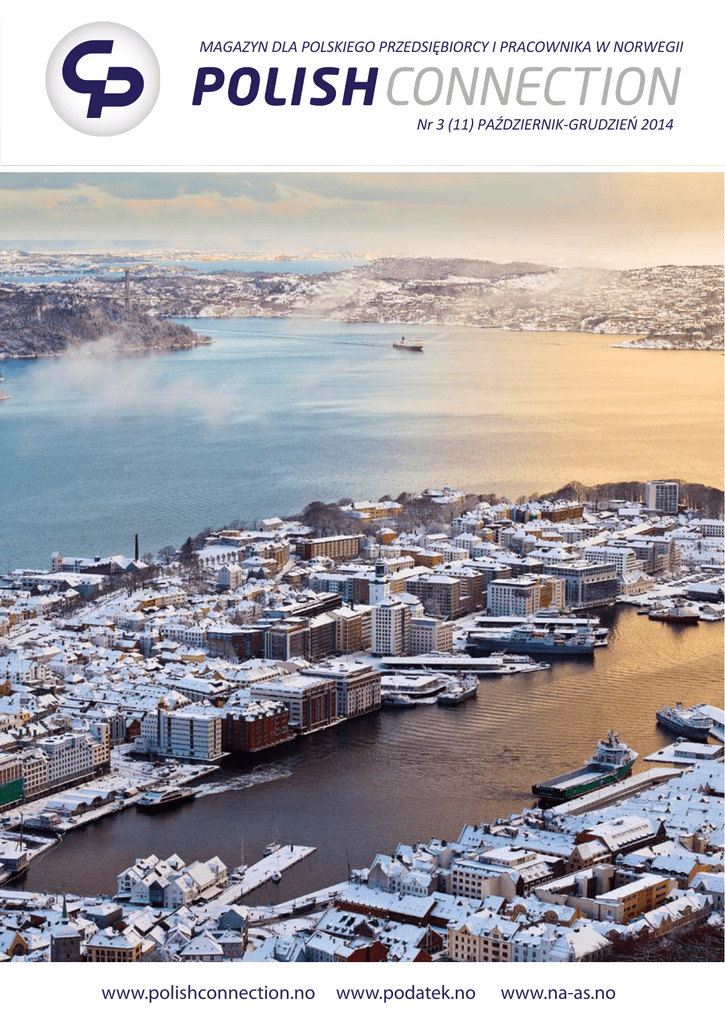 MAGAZYN DLA POLSKIEGO PRZEDSIĘBIORCY I PRACOWNIKA W NORWEGII Nr 3 (11) PAŹDZIERNIK-GRUDZIEŃ 2014 www.polishconnection.no www.polishconnection.no www.podatek.no www.podatek.no www.na-as.no www.na-as.no Spis treści Polish Connection otwiera nowe biura Norweskie zasiłki socjalne związane z pojawieniem się dziecka Zmiany w norweskiej ustawie urlopowej Ponowne rozpatrzenie kwestii alimentów dla 20-latków Norwegia zapowiada zaostrzenie walki z przestępczością gospodarczą 70 miliardów Euro do podziału Nie macie pojęcia, co na Was czeka – wywiad z Bartkiem ObuchowiczemKamińskim Bergen w czasie wolnym. Część 1. - muzea Redaktor naczelny: Maja Zaborek Szata graficzna i skład: Marek Sulej (Dorkassa.pl) Listy do redakcji: [email protected] Reklama: [email protected] Okładka: iStock.com©ZoneCreative 2 03 04 07 08 10 12 15 17 Adres redakcji: Polish Connection Sp. z o.o. ul. Antoniego Abrahama 37/3, 81-366 Gdynia tel: +48 887 888 304 tel. norweski: +47 67 41 24 70 www.polishconnection.no Maja Zaborek Polish Connection otwiera nowe biura Z dniem 1 września br. rozpoczął działalność warszawski Oddział firmy Polish Connection Sp. z o.o. Biuro mieści się w budynku Millennium Plaza położonym w centrum Warszawy, w Alejach Jerozolimskich 123A. Doskonała lokalizacja w centralnym obszarze biznesu wybrana została z myślą o zapewnieniu naszym Klientom bezpośredniego dostępu do infrastruktury oraz środków komunikacji miejskiej. W siedzibie nowego Oddziału w Warszawie Klienci będą mogli korzystać ze wszystkich usług Polish Connection, ciesząc się jednocześnie dużym komfortem. Do podstawowych zadań Oddziału należą: wsparcie rozwoju sprzedaży usług skierowanych do klienta biznesowego oraz indywidualnego, głównie z rejonu Polski Centralnej, a także ugruntowanie wizerunku firmy na lokalnym rynku, jako przedsiębiorstwa otwartego na Klienta i świadczącego usługi na najwyższym poziomie niezależnie od lokalizacji. „Powołanie nowych biur wpisuje się w realizowane przez nas plany ekspansji na rok 2014. Dążymy do zbudowania stabilnej bazy do dalszego rozwoju firmy zarówno w Polsce, w Norwegii, jak i na Litwie i w Rumunii. 1 września br. otwarte zostały także oddziały w Siauliai na Litwie oraz trzeci, norweski oddział, zlokalizowany w miejscowości Molde. Natomiast 1 października br. rozpoczną działalność oddziały w Bukareszcie oraz czwarty, norweski oddział w Trondheim” - mówi Aleksandra F. Eriksen, Prezes Zarządu Polish Connection Sp. z o.o. Norweskie oddziały to wyjście naprzeciw rosnącej populacji Polaków zamieszkujących rejony Molde oraz Trondheim, którym zgodnie z najnowszą dewizą, chcemy zapewnić dostęp do naszych usług „po sąsiedzku”. Każdy z oddziałów oferować będzie także pełen wachlarz usług księgowych dla zagranicznych podmiotów prowadzących lub planujących rozpoczęcie działalności gospodarczej w Norwegii. Norwegia staje się bardzo popularnym kierunkiem emigracji oraz chłonnym rynkiem inwestycyjnym także dla podmiotów gospodarczych z Litwy oraz Rumunii. Placówki w Siauliai i Bukareszcie są odpowiedzią na potrzeby naszych obecnych Klientów biznesowych oraz indywidualnych, dla których niezmiernie istotny jest bezpośredni kontakt oraz konsultacje w rodzimym języku z zachowaniem wysokich standardów obsługi. Jesteśmy przekonani, że możliwość bezpośredniego kontaktu przyniesie wymierne korzyści obu stronom, a bieżące wsparcie merytoryczne w sprawach podatkowych, socjalnych, jak i dotyczących prowadzenia biznesu w Norwegii, będzie wyjściem naprzeciw oczekiwaniom zarówno naszych stałych, jak i przyszłych Klientów. Dnia 8 września br. odbyło się oficjalne otwarcie warszawskiego Oddziału firmy Polish Connection. Swoją obecnością zaszczycili nas zarówno przedstawiciele biznesu, jak i polskich oraz norweskich organizacji rządowych i pozarządowych. Serdecznie dziękujemy za wizytę oraz wieloletnią, owocną współpracę. 3 Konrad Lotczyk Norweskie zasiłki socjalne związane z urodzinami dziecka Zasiłek rodzicielski i zasiłek tacierzyński W ostatnim czasie wśród Polaków pracujących w Norwegii rośnie zainteresowanie różnego rodzaju świadczeniami socjalnymi, w szczególności zaś wzrost zainteresowania widoczny jest w obszarze świadczeń związanych z urodzeniem się dziecka. W naszych artykułach poruszaliśmy już kilka razy temat zasiłku rodzinnego (barnetrygd) i opiekuńczego (kontantstøtte), które przysługują dzieciom rodzica pracującego (i odprowadzającego składki na ubezpieczenie społeczne) w Norwegii. W tym artykule chcielibyśmy poruszyć temat, wokół którego powstało wiele różnych interpretacji, w związku z czym osoby starające się o tę formę pomocy socjalnej są często postawione w trudnej sytuacji w obliczu niejasnych przepisów i wymagań, które powinni spełniać, aby mieć prawo do tego rodzaju pomocy. Tematem tym jest tzw. zasiłek rodzicielski (foreldrepenger) i jego szczególna forma, foreldrepenger til far (zasiłek tacierzyński). Jakie podstawowe wymagania trzeba spełnić, aby mieć prawo do otrzymania zasiłku? • trzeba pracować przez przynajmniej 6 z ostatnich 10 miesięcy i mieć wypracowany dochód w wysokości ½ stawki G, czyli minimum 44 185 NOK, • jeśli wnioskujący pobierał w tym czasie np.: zasiłek chorobowy (sykepenger), zasiłek rodzicielski (foreldrepenger), zasiłek dla bezrobotnych (dagpenger under arbeidsløshet), zasiłek przejściowy (arbeidsavklaringspenger), to ten zarobek jest traktowany na równi z osiągniętym dochodem, tzn. daje prawo do zasiłku rodzicielskiego. 4 Jak długo można pobierać foreldrepenger i kiedy najlepiej składać podanie? Według nowych zasad, w przypadku dzieci urodzonych po 1. lipca 2014 r., podział urlopu pomiędzy rodziców wygląda następująco: A. PODZIAŁ URLOPU, W SYTUACJI, KIEDY OBYDWOJE RODZICE MAJĄ PRAWO DO FORELDREPENGER (matka i ojciec dziecka 