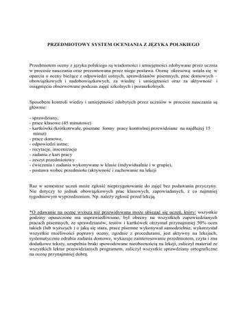 PRZEDMIOTOWY SYSTEM OCENIANIA Z JĘZYKA POLSKIEGO