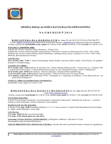 na grudzień 2014 - Miejska Biblioteka Publiczna