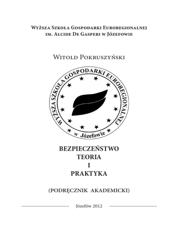Wyższa Szkoła Gospodarki Euroregionalnej im. Alcide De Gasperi w Józefowie Witold Pokruszyński BEZPIECZEŃSTWO TEORIA I PRAKTYKA (PODRĘCZNIK AKADEMICKI) Józefów 2012 Recenzja prof. dr inż. Tadeusz Jemioło prof. dr hab. Wojciech Łepkowski Komitet wydawniczy dr hab. Magdalena Sitek mgr Sylwia Ćmiel Adres redakcji Wydawnictwo Wyższej Szkoły Gospodarki Euroregionalnej im. Alcide De Gasperi w Józefowie 05-410 Józefów, ul. Sienkiewicza 2 tel./fax +48 022 789 19 03 [email protected] www.wsge.edu.pl Korekta mgr Sławomir Koźlak ISBN 978-83-62753-15-4 © Copyright by Wyższa Szkoła Gospodarki Euroregionalnej im. Alcide De Gasperi w Józefowie, Józefów 2012 Wszelkie prawa zastrzeżone. Kopiowanie, przedrukowywanie i rozpowszechnianie całości lub fragmentów niniejszej publikacji bez zgody wydawcy zabronione. Wydawnictwo Wyższej Szkoły Gospodarki Euroregionalnej im. Alcide De Gasperi 05-410 Józefów, ul. Sienkiewicza 2 http://www.wsge.edu.pl/pl/biblioteka-i-wydawnictwo.html Skład, łamanie oraz projekt okładki mgr Miłosz Ukleja Druk i oprawa P.H.U. Multikram 2 | WSGE Spis treści: WSTĘP..............................................................................................................................7 CZĘŚĆ I WPROWADZENIE......................................................................................................13 1. 1.1 1.2 1.3 1.4 POJĘCIE I ZAKRES POLITYKI BEZPIECZEŃSTWA........................14 Pojęcie polityki bezpieczeństwa - definicje................................................14 Obszar i zakres polityki bezpieczeństwa.....................................................18 Znaczenie polityki w bezpieczeństwie........................................................24 Polityka bezpieczeństwa państwa a racja stanu.........................................31 2. POJĘCIE I ZAKRES STRATEGII BEZPIECZEŃSTWA.....................35 2.1 Pojęcie strategii bezpieczeństwa – definicje...............................................35 2.2 Obszar i zakres polistrategii bezpieczeństwa narodowego......................44 2.3 Strategia w polityce bezpieczeństwa...........................................................52 PODSUMOWANIE......................................................................................................53 CZĘŚĆ II WPROWADZENIE......................................................................................................59 1. 1.1 1.2 1.3 1.4 WSTĘP DO TEORII BEZPIECZEŃSTWA.............................................61 Pojęcie teorii bezpieczeństwa.......................................................................62 Zakres bezpieczeństwa narodowego...........................................................67 Zakres bezpieczeństwa międzynarodowego..............................................69 Główne problemy bezpieczeństwa w XXI wieku......................................71 2. 2.1 2.2 BEZPIECZEŃSTWO JAKO DYSCYPLINA NAUKOWA....................73 Bezpieczeństwo w nauce...............................................................................74 Struktura bezpieczeństwa.............................................................................75 3. 3.1 3.2 3.3 3.4 3.5 3.6 3.7 UWARUNKOWANIA BEZPIECZEŃSTWA NARODOWEGO.........78 Uwarunkowanie geopolityczne.............................................................78 Uwarunkowanie ideologiczno-polityczne.............................................82 Uwarunkowanie ekonomiczne..............................................................84 Uwarunkowanie prawno – instytucjonalne..........................................85 Uwarunkowanie militarne....................................................................87 Uwarunkowanie społeczne...................................................................88 Uwarunkowanie kulturowe...................................................................89 WSGE | 3 4. KRYTERIA BEZPIECZEŃSTWA NARODOWEGO.........................92 4.1 Siła – kryterium podstawowe................................................................92 4.2 Wielkość przestrzeni.............................................................................95 4.3Wiarygodność.....................................................................................100 4.4 Dostęp do najnowszej technologii......................................................103 4.5 Udział w bezpieczeństwie kooperatywnym.........................................106 4.6 Skuteczność walki z terroryzmem.......................................................109 4.7 Stopień demokratyzacji bezpieczeństwa.............................................116 5. 5.1 5.2 5.3 ROLA WIELKICH MOCARSTW W BEZPIECZEŃSTWIE..........121 Geneza wielkich mocarstw.................................................................121 Rola wielkich mocarstw po II wojnie światowej.................................122 Rola wielkich mocarstw w XXI wieku................................................125 6. INTERWENCJE MILITARNE W BEZPIECZEŃSTWIE................129 6.1 Zjawisko interwencji militarnych w bezpieczeństwie.........................129 6.2 Współczesne uwarunkowania interwencji militarnych......................136 PODSUMOWANIE...........................................................................................139 CZĘŚĆ III WPROWADZENIE..........................................................................................142 1. 1.1 1.2 1.3 BEZPIECZEŃSTWO NARODOWE – POJĘCIE I STRUKTURA..143 Istota bezpieczeństwa narodowego.....................................................143 Cele bezpieczeństwa narodowego.......................................................148 Struktura bezpieczeństwa narodowego...............................................150 2. 2.1 2.2 2.3 2.4 2.5 2.6 2.7 2.8 2.9 2.10 BEZPIECZEŃSTWO WEWNĘTRZNE............................................154 Bezpieczeństwo polityczne...................................................