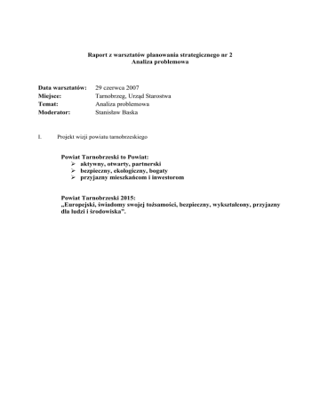 Raport z warsztatów planowania strategicznego nr 2 Analiza