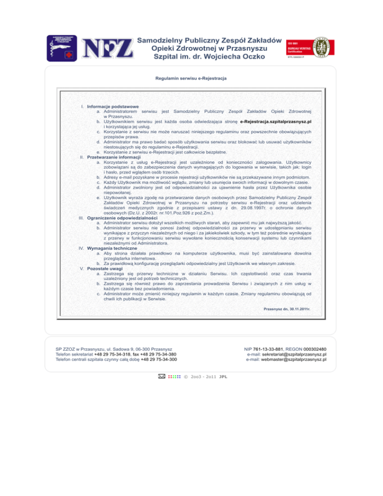 Regulamin - e-rejestracja - Samodzielny Publiczny Zespół Zakładów