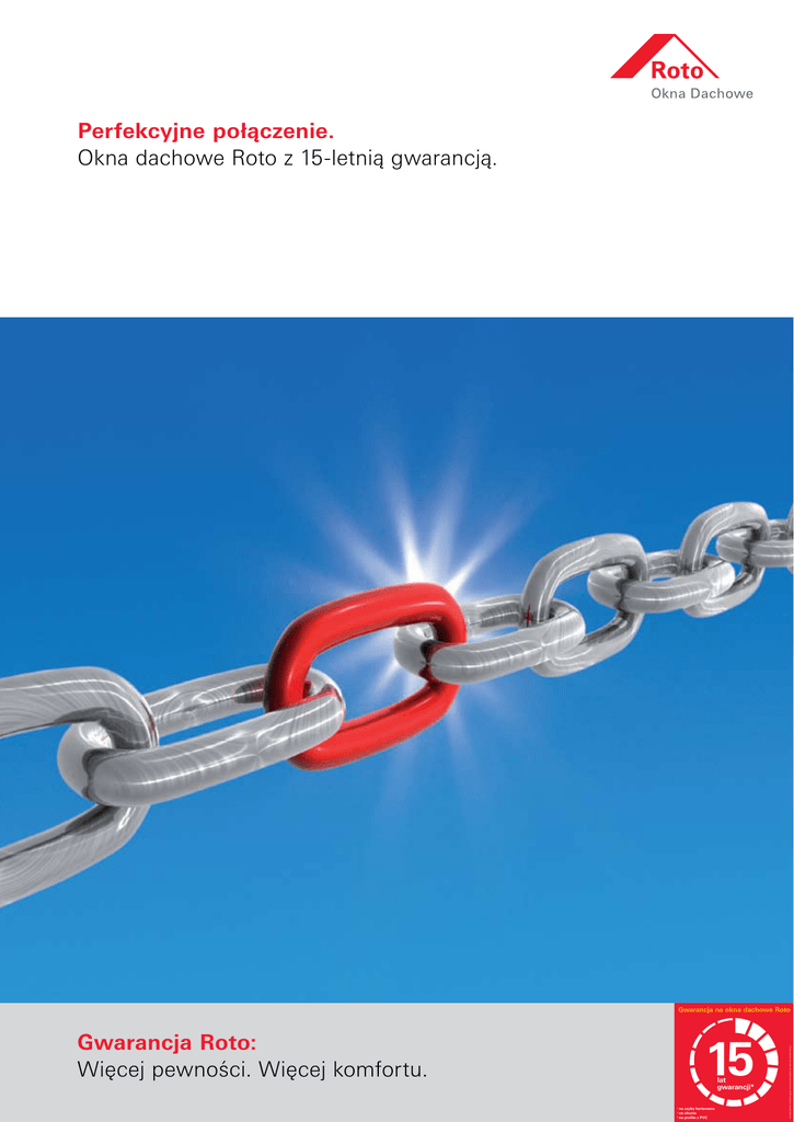 Perfekcyjne połączenie. Okna dachowe Roto z 15-letnią gwarancją. Gwarancja Roto: Więcej pewności. Więcej komfortu. lat gwarancji* * na * na * na szyby hartowane okucia profile z PVC szczegółowe warunki gwarancji są dostępne na stronie www.roto.pl Gwarancja na okna dachowe Roto www.roto.pl Roto z zaufania czyni zasadę. Więcej swobody. Więcej komfortu. Ta obietnica dotyczy nie tylko komfortu mieszkania z naszymi markowymi oknami dachowymi. Czujemy się również zobowiązani do zapewnienia większego bezpieczeństwa i długoletniej satysfakcji z naszego produktu. Można nas trzymać za słowo. Gwarantujemy: 1. 15 lat gwarancji materiałowej: na okna dachowe firmy Roto w przypadku stłuczenia szyby wskutek gradobicia w oknach z szybą zewnętrzną ze szkła hartowanego w przypadku pęknięcia okuć w przypadku pęknięcia ram z tworzywa sztucznego przy obciążeniach odpowiednich do warunków określonych przez normę RAL 716/1 2. 5 lat gwarancji w przypadku wad materiałowych, konstrukcyjnych i/ lub produkcyjnych: na okna dachowe firmy Roto nie objęte gwarancją z punktu 1 i na kołnierze uszczelniające na systemy słoneczne firmy Roto z wyłączeniem wszystkich części elektrycznych i ruchomych w przypadku zaparowania szyb w przestrzeni między szybami 3. 2 lata gwarancji w przypadku wad materiałowych, konstrukcyjnych i/lub produkcyjnych: na wyposażenie dodatkowe do okien dachowych Roto (rolety, zewnętrzne, żaluzje opuszczane, sterowania zdalne itd.) na części elektryczne i ruchome systemu słonecznego firmy Roto Początek biegu gwarancji. Gwarancja rozpoczyna się każdorazowo z dniem zakupu fabrycznie nowego produktu przez konsumenta – lub w przypadku montażu przez dekarza – z dniem montażu fabrycznie nowego produktu. Dzień ten należy udokumentować przedłożeniem dowodu zakupu lub rachunku za montaż. Ograniczenia gwarancji. Z zakresu gwarancji określonego w punktach 2 i 3 wyłączone są wady, które wynikają nie z wad materiałowych, konstrukcyjnych i/lub produkcyjnych samych produktów Roto, tylko są wynikiem faktycznych okoliczności budowlanych, wpływów zewnętrznych, niewłaściwego obchodzenia się, nie uwzględnienia wskazówek producenta zawartych w instrukcjach montażu i obsługi, niefachowych lub niewłaściwych napraw, zastosowania części/ wyposażenia dodatkowego innych niż firmy Roto lub też wynikających znaturalnego zużycia. Gwarancja obejmuje wyłącznie wady, które istniały już w momencie rozpoczęcia biegu gwarancji. Jeżeli warunek ten nie zostanie spełniony, roszczenia będziemy rozstrzygać indywidualnie. Z zakresu gwarancji określonego w punktach 1, 2 i 3 wyłączone są ponadto wady/szkody powstałe w wyniku wadliwej konserwacji, niedostatecznej wentylacji, złej pielęgnacji lub wskutek kondensacji pary wodnej. Stłuczenia szyb są wyłączone z zakresu gwarancji określonego w punkcie 2. Świadczenia z tytułu roszczeń gwarancyjnych: W przypadku wystąpienia wad materiałowych, konstrukcyjnych i/lub produkcyjnych w ramach gwarancji z punktów 2 i 3 dokonamy poprawek produktu na nasz koszt poprzez naszych pracowników serwisowych. Zamiast dokonania poprawek, jesteśmy uprawnieni, w zależności od naszego wyboru, również do dostawy zastępczej, ewentualnie połączonej z usługami montażu lub wymiany przez nasz serwis, albo do zwrotu ceny kupna. Dostawa zastępcza w formie przesłania odpowiednich części zamiennych wchodzi w rachubę w szczególności w przypadku nieznacznych wad, które klient może bezproblemowo sam usunąć. W przypadku gwarancji określonej w punkcie 1 nasze świadczenie gwarancyjne ogranicza się do bezpłatnej dostawy zastępczej materiału bez udziału serwisu, to znaczy bez usługi montażu lub wymiany. W przypadku zaprzestania produkcji pewnych wyrobów lub części zamiennych jesteśmy uprawnieni do dostarczenia odpowiedniego wyrobu zastępczego. Dochodzenie roszczeń gwarancyjnych: Uprawnień z tytułu gwarancji należy dochodzić pisemnie w ciągu miesiąca od wystąpienia przypadku gwarancyjnego (również faksem lub pocztą elektroniczną) wobec Roto Frank Okna Dachowe Sp. z o.o., ul. Lubelska 104, 21-100 Lubartów, biuro.pl@roto-frank. com, fax 081 855 03 83 lub 84. W sprawach nie uregulowanych w niniejszym dokumencie gwarancyjnym zastosowanie mają przepisy kodeksu cywilnego. W przypadku sprzedaży konsumenckiej niniejsza gwarancja nie wyłącza, nie ogranicza ani nie zawiesza uprawnień kupującego wynikających z niezgodności sprzedanego to waru z umową, określonych w szczególności w „Ustawie z dnia 27. lipca 2002 r. o szczególnych warunkach sprzedaży konsumenckiej oraz o zmianie kodeksu cywilnego”. Gwarancja na okna dachowe Roto Chętnie odpowiemy na Państwa pytania. Numer infolinii: 0801 011 470 (0,24 PLN/min.) Roto Frank Okna Dachowe Sp. z o.o. Tel. 0801 011 470 Fax 081 855 05 28 ul. Lubelska 104 21-100 Lubartów [email protected] www.roto.pl lat gwarancji* * na * na * na szyby hartowane okucia profile z PVC szczegółowe warunki gwarancji są dostępne na stronie www.roto.pl Niezależnie od przysługujących zamawiającemu roszczeń ustawowych, które przez tę gwarancję nie zostają ograniczone, udzielamy odbiorcom końcowym produktów firmy Roto, zakupionych po 1 stycznia 2008: