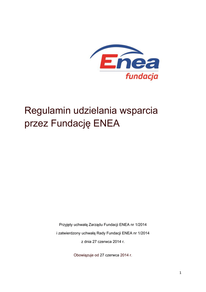 Regulamin udzielania wsparcia przez Fundację ENEA