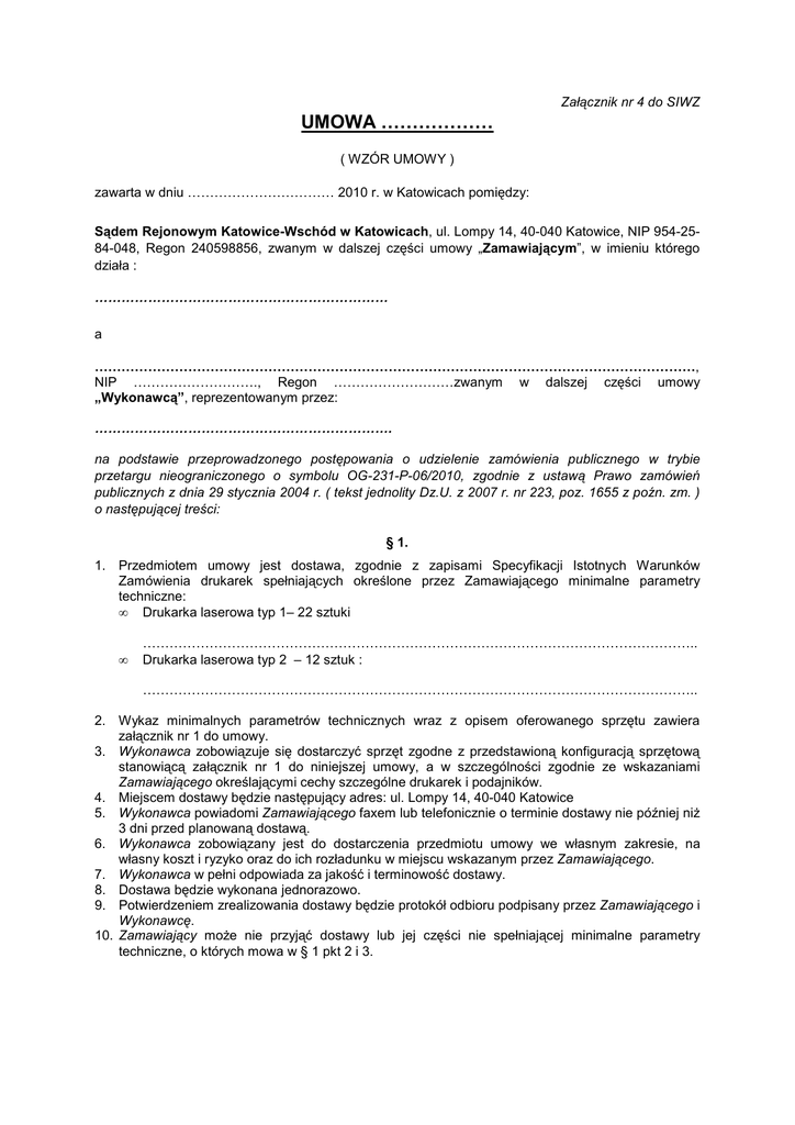 Wzór umowy - Sąd Rejonowy Katowice