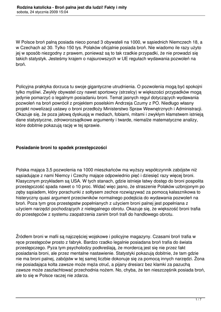 Rodzina katolicka - Broń palna jest dla ludzi! Fakty i mity