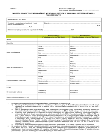 wniosek o podwyższenie/ obniżenie* wysokości kredytu w rachunku