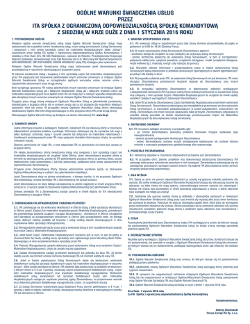 OGÓLNE WARUNKI ŚWIADCZENIA USŁUG PRZEZ ITA SPÓŁKA Z OGRANICZONĄ ODPOWIEDZIALNOŚCIĄ SPOŁKĘ KOMANDYTOWĄ Z SIEDZIBĄ W KRZE DUŻE Z DNIA 1 STYCZNIA 2016 ROKU 1. POSTANOWIENIA OGÓLNE 4. WARUNKI WYKONYWANIA USŁUG Niniejsze ogólne warunki świadczenia usług (dalej Ogólne Warunki Świadczenia Usług) mają zastosowanie do wszystkich umów świadczenia usług, w tym usług serwisowych (Usługi Serwisowe) i związanych z nimi umów sprzedaży części lub materiałów eksploatacyjnych (dalej „Usługi”) zawieranych przez spółkę ITA spółka z ograniczoną odpowiedzialnością Spółka Komandytowa z siedzibą w Krze Duże 57a, 96-325 Radziejowice, wpisanej do Rejestru Przedsiębiorców Krajowego Rejestru Sądowego, prowadzonego przez Sąd Rejonowy dla m.st. Warszawy XIV Wydział Gospodarczy KRS 0000588262, NIP 8381849600, REGON 363066532 (dalej ITA) działająca jako wykonawca. 4.1. ITA wykonuje Usługi w uzgodnionym przez obie strony terminie od poniedziałku do piątku w godzinach od 8.00 do 18.00 (Godziny Pracy). Niniejsze Ogólne Warunki Świadczenia Usług mają zastosowanie jeżeli zleceniodawca jest przedsiębiorcą w rozumieniu obowiązujących przepisów prawa. 4.3. Wszystkie zebrane informacje i przeprowadzone prace w trakcie wykonywania Usług Serwisowych będą umieszczane w protokole serwisowym sporządzonym w dwóch egzemplarzach, po jednym dla każdej ze stron. W zakresie świadczenia Usług i związaną z nimi sprzedażą części lub materiałów eksploatacyjnych przez ITA wyłączone jest stosowanie jakichkolwiek innych wzorców umownych, iż niniejsze Ogólne Warunki Świadczenia Usług, w szczególności ogólnych warunków umów, wzorów umów i regulaminów stosowanych przez drugą stronę. Brak wyraźnego sprzeciwu ITA wobec jakichkolwiek innych wzorców umownych niż niniejsze Ogólne Warunki Świadczenia Usług jak i faktyczne świadczenie Usług jak i faktyczne wydanie części lub materiałów eksploatacyjnych do urządzeń przez ITA nie mogą być w żadnym wypadku interpretowane jako akceptacja innych wzorców umownych niż niniejsze Ogólne Warunki Świadczenia Usług. Przyjęcie przez drugą stronę niniejszych Ogólnych Warunków Usług w jakimkolwiek zamówieniu, oświadczeniu o przyjęciu oferty lub w umowie uważa się za ich przyjęcie dla wszystkich kolejnych zamówień, ofert lub umów. W przypadku zmiany Ogólnych Warunków Usług strony obowiązują każdorazowo Ogólne Warunki Usług obowiązujące w dniu przyjęcia oferty ITA przez drugą stronę. Obowiązujące Ogólne Warunki Usług są dostępne na stronie internetowej ITA: www.ita.pl 2. ZAWARCIE UMOWY Żadne informacje zawarte w katalogach, folderach i reklamach ITA nie stanowią oferty w rozumieniu odpowiednich przepisów kodeksu cywilnego. Informacje odnoszące się do wymiarów lub wagi a także ilustracje, schematy, opisy i rysunki zawarte lub dołączone do materiałów reklamowych i handlowych przekazywanych przez ITA maja wyłącznie charakter informacyjny, chyba, że wyraźnie wskazano inaczej. Złożenie zamówienia nie wiąże ITA, a brak odpowiedzi ITA na zamówienie nie może być uznane za przyjęcie oferty. ITA składa zleceniodawcy ofertę świadczenia Usług oraz związanej z tym sprzedaży części lub materiałów eksploatacyjnych do urządzeń (dalej Oferta) Jeżeli zleceniodawca przyjmie ofertę w terminie jej obowiązywania, prześle do ITA potwierdzenie przyjęcia oferty za pomocą faksu, poczty elektronicznej (skan potwierdzenia ) lub listu poleconego, podpisane przez osoby upoważnione do reprezentowania zleceniodawcy. Przyjęcie przez Zleceniodawcę Oferty stanowi jednocześnie wyrażenie zgody na stosowanie OgólnychWarunkówUsług w całości i bez jakichkolwiek modyfikacji. Jeżeli Zleceniodawca złoży na piśmie oświadczenie, z którego wynika, iż nie przyjmuje Ogólnych WarunkówUsług, umowa pomiędzy ITA a Zleceniodawcą nie zostaje zawarta. Jeżeli Zleceniodawca nie złoży takiego oświadczenia na piśmie najpóźniej w chwili przyjęcia Oferty oznacza to, iż wyraża zgodę na stosowanie OgólnychWarunkówUsług bez jakichkolwiek zmian. Umowa pomiędzy ITA a Zleceniodawcą zostaje zawarta w chwili dojścia do ITA oświadczenia Zleceniodawcy o przyjęciu Oferty. 3. ZOBOWIAZANIA ITA,WYNAGRODZENIE I WARUNKI PŁATNOŚCI 3.1. ITA zobowiązuje się do wykonania określonych w Ofercie Usług a także sprzedaży określonych w Ofercie części (Części) lub materiałów eksploatacyjnych (Materiały Eksploatacyjne), potrzebnych dla prawidłowego działania urządzeń i narzędzi Zleceniodawcy , określonych w Ofercie (Urządzenia lub/i Narzędzia) za wynagrodzeniem określonym w Ofercie jako wynagrodzenie netto, do którego należy doliczyć należny podatek od towarów i usług według stawek obowiązujących w dniu wystawienia faktur sprzedaży (Wynagrodzenie). 3.2. Wynagrodzenie obejmuje koszty czasu pracy wykonania Usług w tym ryczałtowe koszty dojazdu oraz koszt Części i Materiałów Eksploatacyjnych. 3.3. Jeżeli koszt Części i Materiałów Eksploatacyjnych wyrażony jest w euro, to jest on płatny w równowartości tej kwoty, według kursu sprzedaży euro ogłoszonego przez Narodowy Bank Polski, obowiązujący w dniu wystawienia faktury sprzedaży przez ITA. 4.2. W czasie wykonywania Usług Serwisowych Zleceniodawca zapewni: - swobodny dostęp do Urządzeń na czas niezbędny do wykonania Usług Serwisowych - pomoc techniczną konieczną do wykonania Usług Serwisowych, w tym w szczególności: połączenia elektryczne, sprężone powietrze, urządzenia odciągowe, środki (urządzenia dźwigowe, wózki widłowe itp.), materiały, energii i siły roboczej do pomocy 4.4. W przypadku ustalenia przez ITA, że wykonanie Usług Serwisowych nie jest konieczne, ITA może obciążyć Zleceniodawcę poniesionymi kosztami dojazdu do Zleceniodawcy oraz innymi poniesionymi stratami. 4.5. W przypadku opóźnienia Zleceniodawcy w dokonywaniu płatnośc
