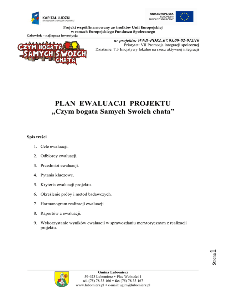 PLAN EWALUACJI PROJEKTU „Czym bogata