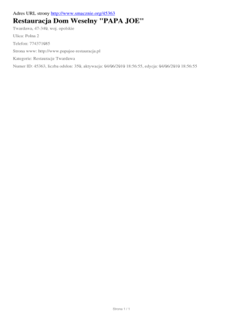 Restauracja Dom Weselny "PAPA JOE", Twardawa, Polna 2
