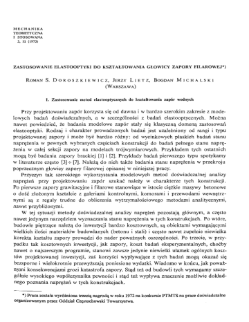 о п т и ч е с к и м м е т о д о м , М о с к в а 1970. 7. R . S. DOROSZKIEWICZ, J . LIETZ, В . MICHALSKI, Fotoelasticimetricke vysetrovanie modelu gravitafnej priehrady s prihliadnutim na vplyv podlozia, Stavebnicky Casopis, SAV, Bratislava, 7, 19 (1971), 547558. 9* 328 R . S. DOROSZKIEWICZ, J . LIETZ, B . MICHALSKI 8. R. DOROSZKIEWICZ, Fotosprę ż ystoś ciowe