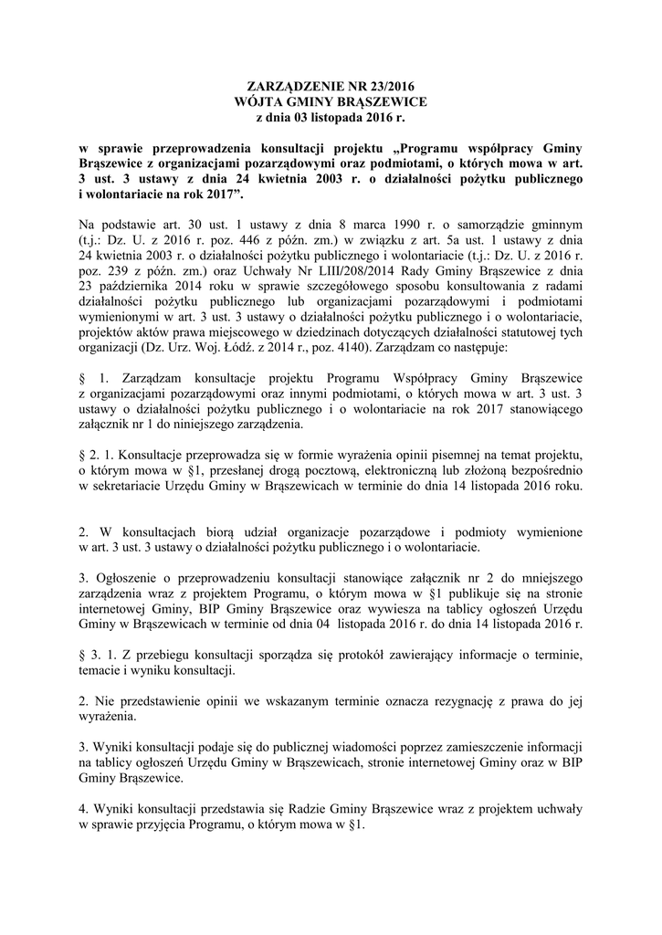 Zarządzenie 23-2016 - Urząd Gminy Brąszewice