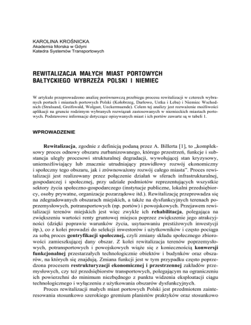 KAROLINA KROŚNICKA Akademia Morska w Gdyni Katedra Systemów Transportowych REWITALIZACJA MAŁYCH MIAST PORTOWYCH BAŁTYCKIEGO WYBRZEŻA POLSKI I NIEMIEC W artykule przeprowadzono analizę porównawczą przebiegu procesu rewitalizacji w czterech wybranych portach i miastach portowych Polski (Kołobrzeg, Darłowo, Ustka i Łeba) i Niemiec Wschodnich (Stralsund, Greifswald, Wolgast, Ueckermuende). Celem tej analizy jest rozważenie możliwości aplikacji na gruncie rodzimym wybranych rozwiązań zastosowanych w niemieckich miastach portowych. Podstawowe informacje dotyczące opisywanych miast i ich portów zawarte są w tabeli 1. WPROWADZENIE Rewitalizacja, zgodnie z definicją podaną przez A. Billerta [1], to „kompleksowy proces odnowy obszaru zurbanizowanego, którego przestrzeń, funkcje i substancja uległy procesowi strukturalnej degradacji, wywołującej stan kryzysowy, uniemożliwiający lub znacznie utrudniający prawidłowy rozwój ekonomiczny i społeczny tego obszaru, jak i zrównoważony rozwój całego miasta”. Proces rewitalizacji jest realizowany przez połączenie działań w sferach infrastrukturalnej, gospodarczej i społecznej, przy udziale podmiotów reprezentujących wszystkie sektory życia społeczno-gospodarczego (instytucje publiczne, lokalni przedsiębiorcy, osoby prywatne, organizacje pozarządowe itd.). Rewitalizację przeprowadza się na zdegradowanych obszarach miejskich, a także na dysfunkcyjnych terenach poprzemysłowych, potransportowych (np. portów) i powojskowych. Przejawem rewitalizacji terenów miejskich jest więc zwykle ich rehabilitacja, polegająca na zwiększeniu wartości renty gruntowej miejsca poprzez zwiększenie jego atrakcyjności (dzięki poprawie warunków życia, usytuowaniu prestiżowych inwestycji itp.), co z kolei prowadzi do selekcji inwestorów i użytkowników i często pociąga za sobą proces gentryfikacji społecznej, czyli zmiany składu społecznego zbiorowości zamieszkującej dany obszar. Z kolei rewitalizacja terenów poprzemysłowych, potransportowych i powojskowych wiąże się z koniecznością konwersji funkcjonalnej przestarzałych technologicznie obiektów i budynków oraz obszarów, na których się znajdują. Zmiana funkcji jest w tym przypadku często poprzedzona procesem restrukturyzacji ekonomicznej i przestrzennej zakładów przemysłowych, czy też przedsiębiorstw transportowych, polegającym na ograniczeniu ich powierzchni do minimum niezbędnego z punktu widzenia eksploatacji ciągu technologicznego i wyłączeniu z użytkowania obszarów dysfunkcyjnych. Proces rewitalizacji małych miast portowych Polski jest przedmiotem zainteresowania stosunkowo szerokiego gremium planistów praktyków oraz stosunkowo 52 PRACE WYDZIAŁU NAWIGACYJNEGO AKADEMII MORSKIEJ W GDYNI, nr 24, 2010 skromnego grona naukowców. W wyniku działalności tych pierwszych publikowane są przez gminy dokumenty dotyczące poszczególnych miast portowych w postaci Lokalnych programów rewitalizacji 1 . W przypadku badaczy (Grzelakowski, Krośnicka, Pacuk, Staszewska i inni [4, 5, 6, 9, 11]) powstają opracowania odnoszące się do problemu rewitalizacji małych miast portowych w sposób syntetyczny. Tabela 1 Podstawowe dane małych miast portowych Bałtyku będących przedmiotem analizy. Dane za rok 2006 Miasto portowe Położenie Przybliżona liczba ludności Przeładunki roczne – przybliżona wartość [tys. ton] Maksymalne wielkości zawijających jednostek [m] Łeba Ujście rzeki Łeby do Bałtyku 3800 0,0 L max = 40,0 B max = 10,0 T max = 3,0 Ustka Ujście rzeki Słupi do Bałtyku 17240 7,2 L max = 58,0 B max = 11,5 T max = 4,5 Darłowo Ujście rzeki Wieprzy do Bałtyku 14730 55,2 L max = 75,0 T max = 4,0 Kołobrzeg Ujście rzeki Parsęty do Bałtyku 45310 154,3 L max = 95,0 T max = 4,7 Ueckermünde Ujście rzeki Wkry do Zalewu (Niemcy) Szczecińskiego 10400 około 500 T max = 2,8 Wolgast (Niemcy) Zalew Szczeciński (między wyspą Uznam a stałym lądem) 12720 350–990 L max = 150,0 T max = 5,7 Greifswald (Niemcy) Ujście rzeki Ryck do Zatoki Greifswaldzkiej 55000 poniżej 1000 L max = 85,0 B max = 13,0 T max = 6,1 Stralsund (Niemcy) Nad Strelasundem (między wyspą Rugią a stałym lądem) 57610 650–990 L max = 150,0 B max = 22,0 T max = 5,2 Objaśnienie: L max – długość, B max – szerokość, T max – zanurzenie maksymalne statku Źródło: Opracowanie własne na bazie: Locja Admiralicji Brytyjskiej – Baltic Pilot 18, s. 480; Locja amerykańska 194S - Baltic, s. 114; http://www.statistik-mv.de/sis/ [dostęp 05.01.2008], GUS. Rewitalizacja małych miast portowych polskiego wybrzeża jest zagadnieniem bardzo złożonym, gdyż dotyczy jednocześnie obszarów miejskich, portów, terenów poprzemysłowych związanych technologicznie z gospodarka morską oraz bardzo 1 Szerzej na ten temat: [8]. 53 K. Krośnicka, Rewitalizacja małych miast portowych bałtyckiego wybrzeża Polski i Niemiec często także terenów wojskowych (rys. 1). Jest ona wynikiem nałożenia się na siebie ogólnych trendów rozwoju urbanistycznego miast oraz skutków funkcjonalnych transformacji ustrojowej, która w sposób szczególny dotknęła małe porty i związane z nimi gałęzie przemysłu i transportu. Podobny proces zmian funkcjonalno-przestrzennych miał i nadal ma miejsce na obszarze byłej Niemieckiej Republiki Demokratycznej. Ze względu na zbliżone uwarunkowania przyrodnicze, gospodarcze, transportowe i historyczne, specyfika i kierunki przekształceń małych miast portowych obu wymienionych państw, czyli Polski i Niemiec, mają zasadniczo zbliżony charakter. Przekształcenia te cechują się jednak nieco odmienną dynamiką, co wynika zapewne z różnic prawnych w obrębie systemu planistycznego, a także zainwestowania olbrzymich środków finansowych w rozwój regionów byłej NRD po zjednoczeniu Niemiec. Między innymi z tego powodu wydaje się, iż w polskich miastach portowych obserwuje się pewną retardację względem pro