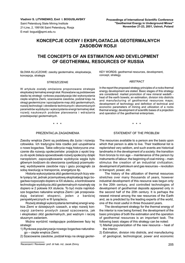 koncepcje oceny i eksploatacja geotermalnych zasobów rosji the
